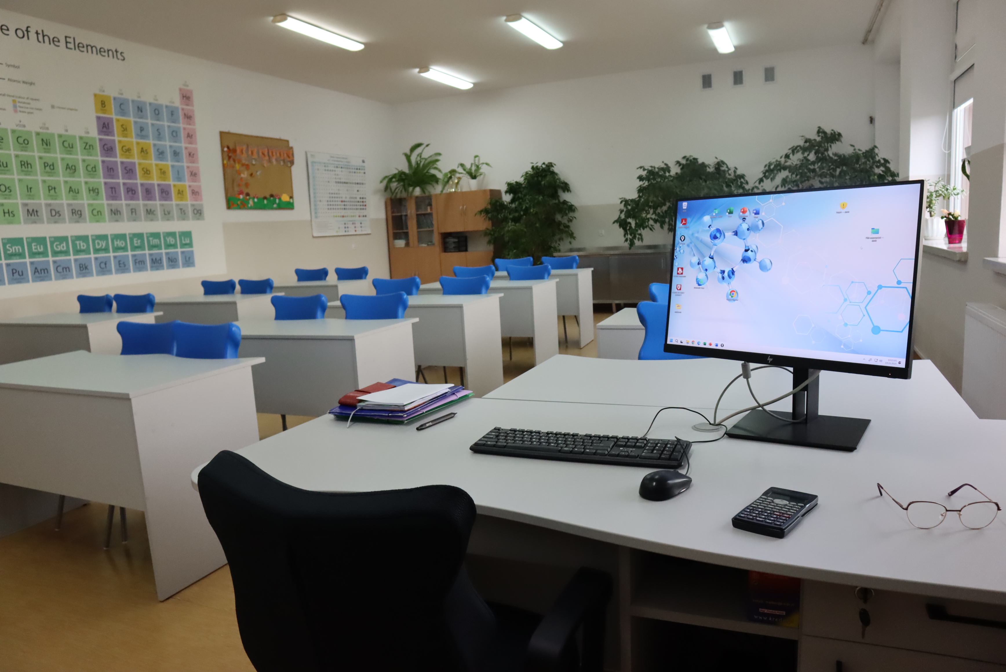 - Nowe wyposażenie meblowe: 13 zestawów stołów z krzesłami dla uczniów oraz stanowisko nauczyciela.