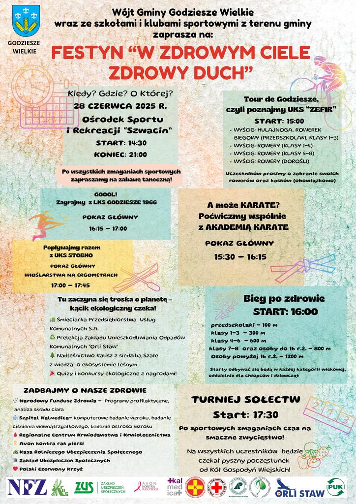 Zaproszenie do udziału w Festynie "w zdrowym ciele zdrowy duch" -28 czerwca 2025r.