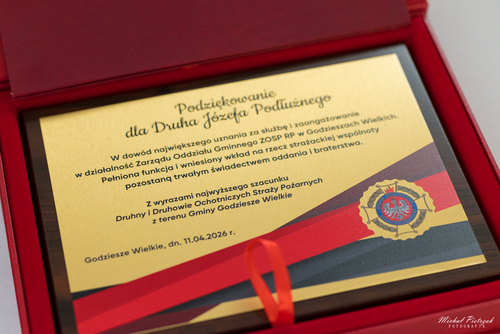 - Druhowi Józefowi Podłużnemu – byłemu Prezesowi Zarządu Oddziału Gminnego Związku OSP RP w Godzieszach Wielkich