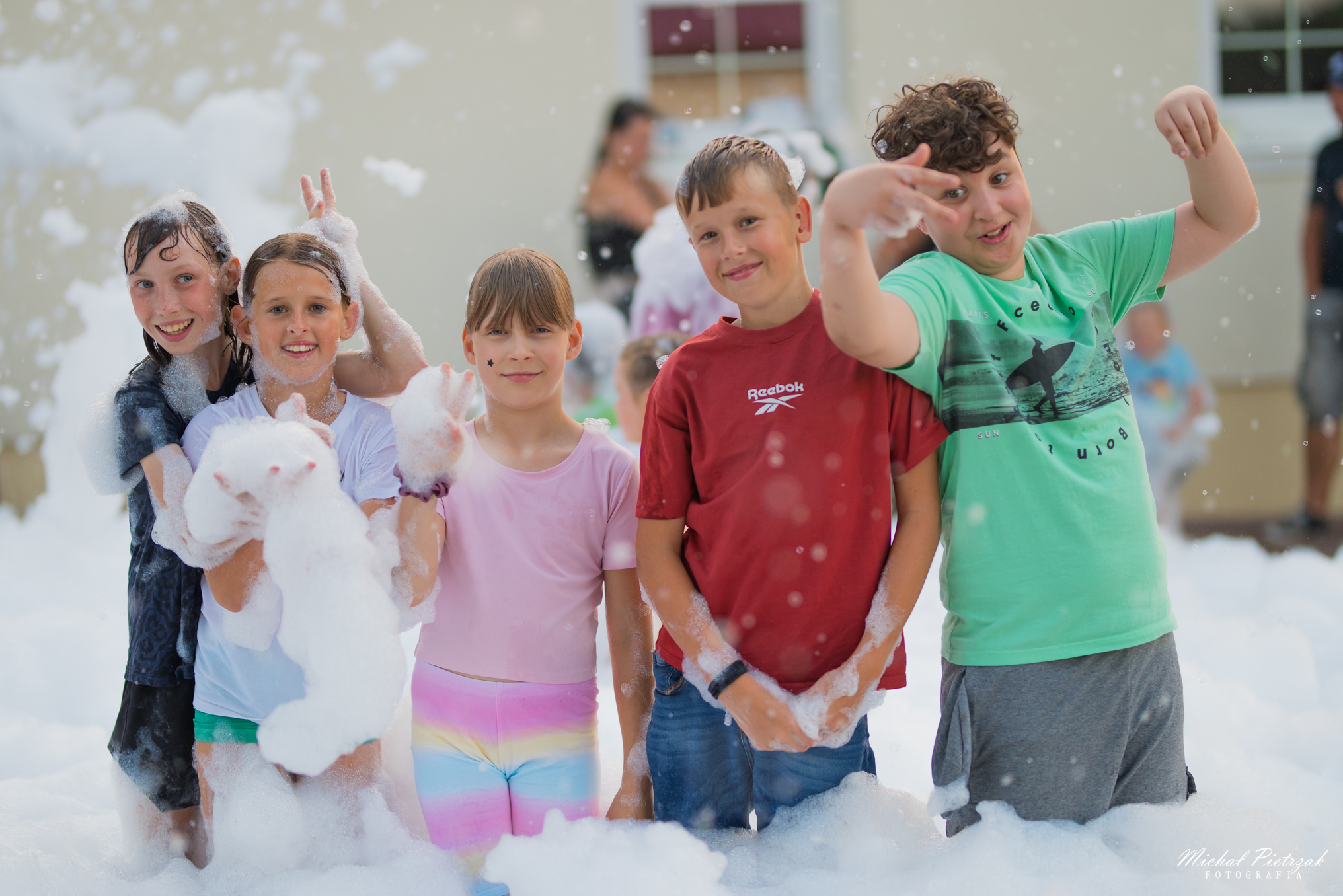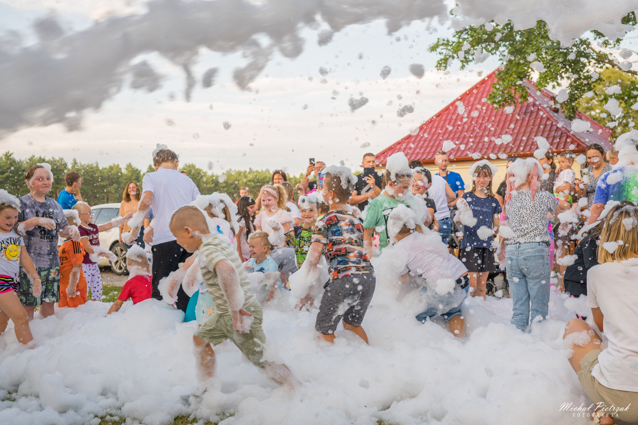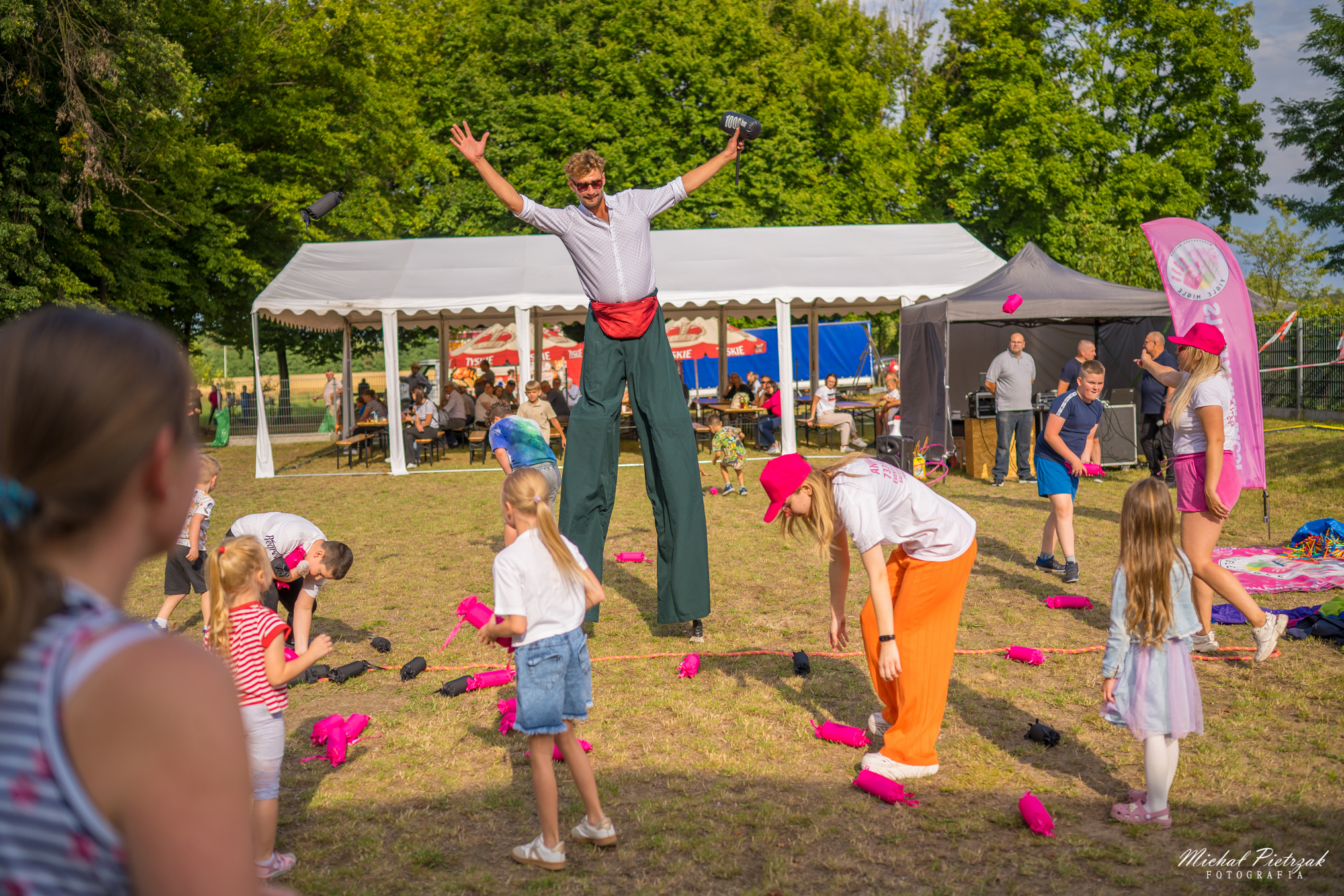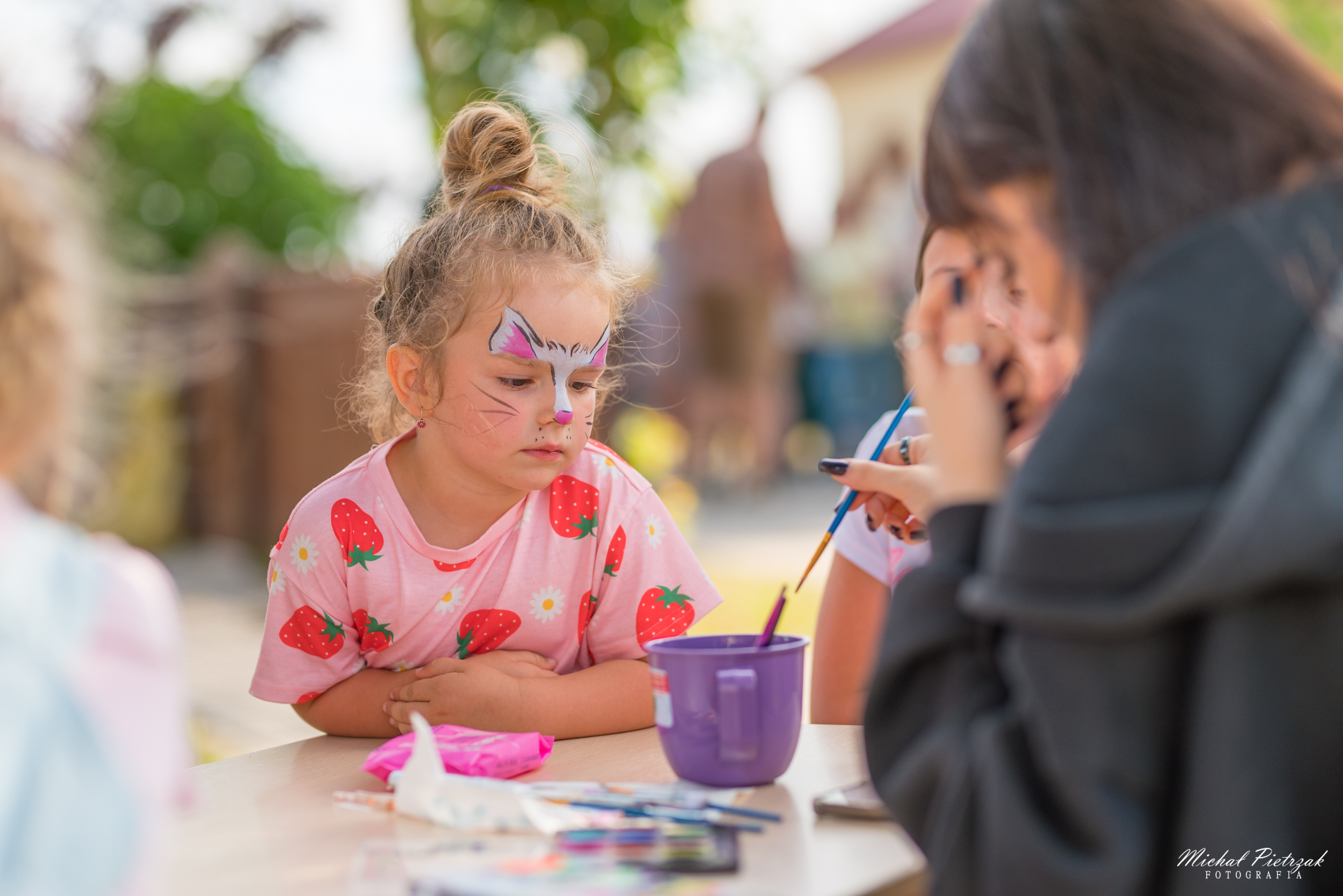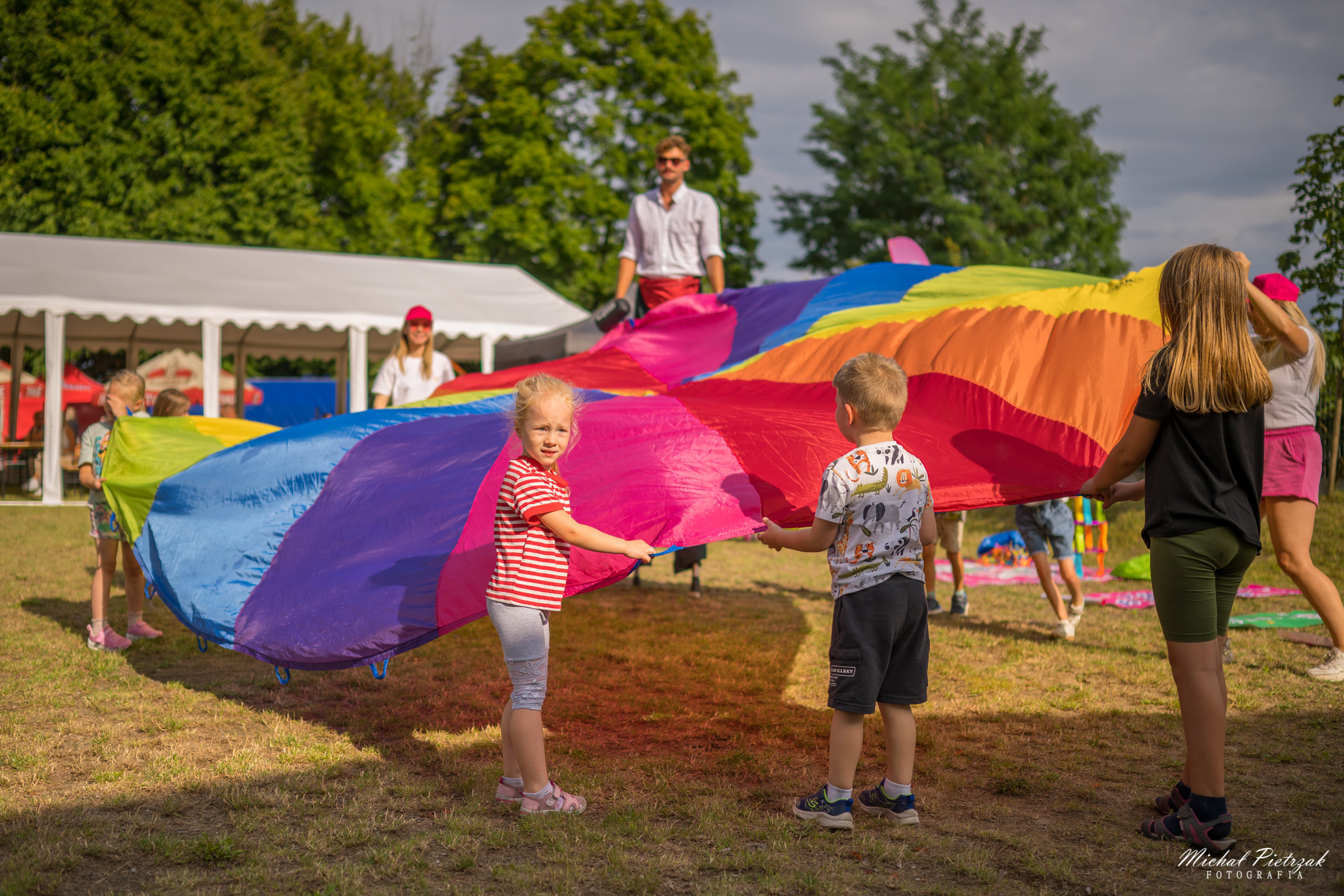 Panowała rewelacyjna atmosfera, dopisała piękna, letnia pogoda, a atrakcji nie brakowało. Dzieci korzystały z animacji, dmuchańców i malowania twarzy, a wszyscy razem bawili się świetnie podczas wspólnych zabaw i loterii fantowej.
