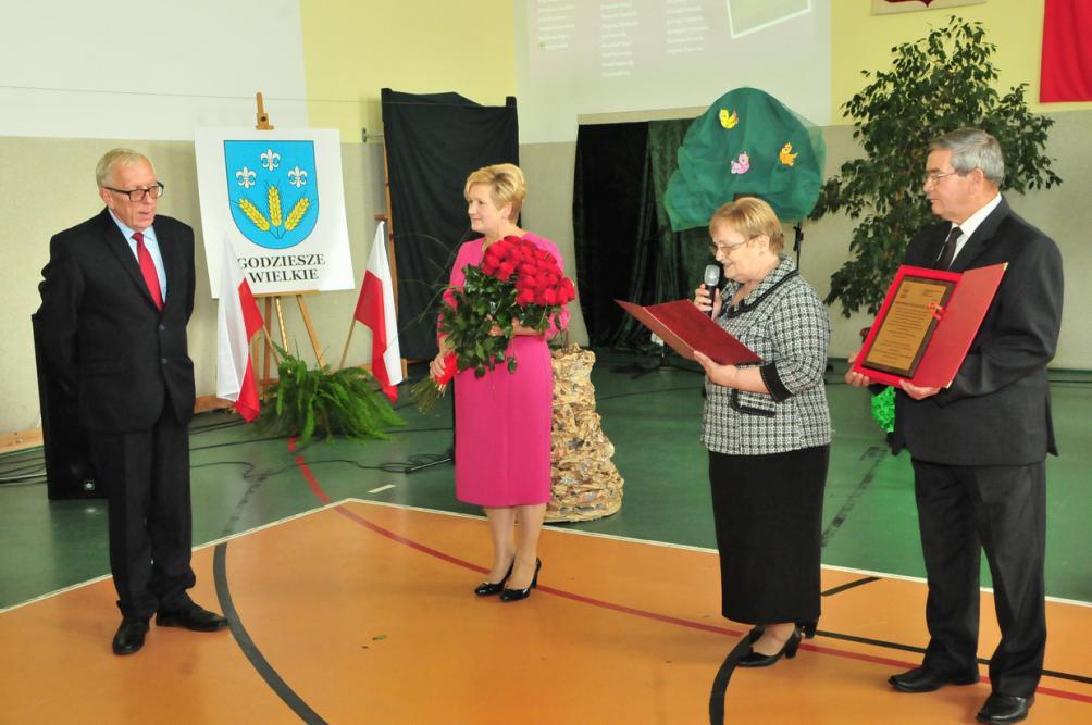 I właśnie tej współpracy poświęcona została kolejna część uroczystości, podczas której pani Senator Andżelika Możdżanowska, pan Prezydent Grzegorz Sapiński i pan Marek Baumgart otrzymali tradycyjne wyróżnienie „ Przyjaciel Gminy Godziesze Wielkie".