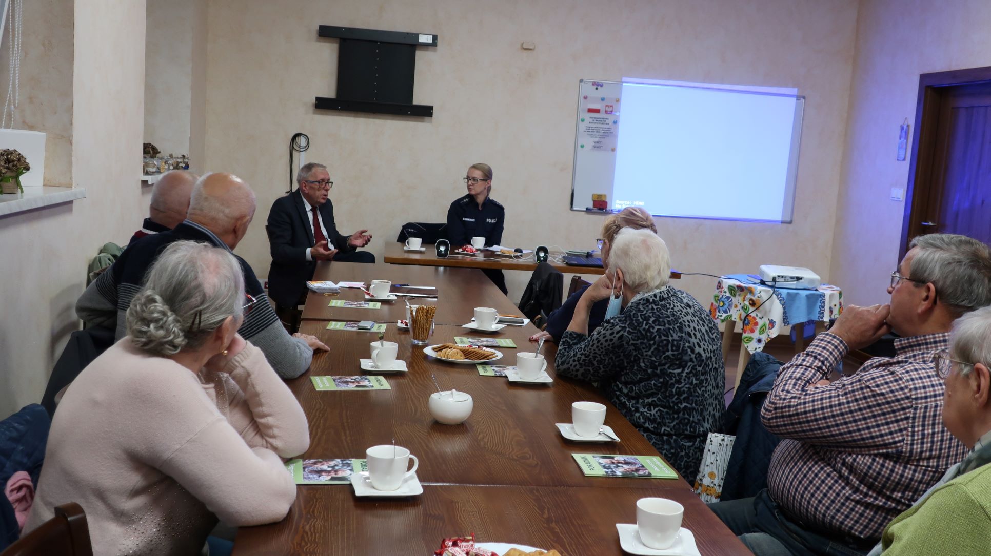 Trzeci moduł to cykl zajęć pod nazwą „Jesteśmy na bieżąco”, poruszających problematykę bezpieczeństwa seniorów, możliwości aktywizacji zawodowej, zdrowego stylu życia oraz funkcjonowania administracji gminnej. Seniorzy spotkali się z wójtem gminy oraz przedstawicielami służb mundurowych: straży pożarnej i policji, dowiedzieli się wiele na temat bezpiecznego funkcjonowania na co dzień a także w warunkach zagrożenia zdrowia czy życia. Wysłuchali też zdalnych wykładów pielęgniarki oraz dietetyka.