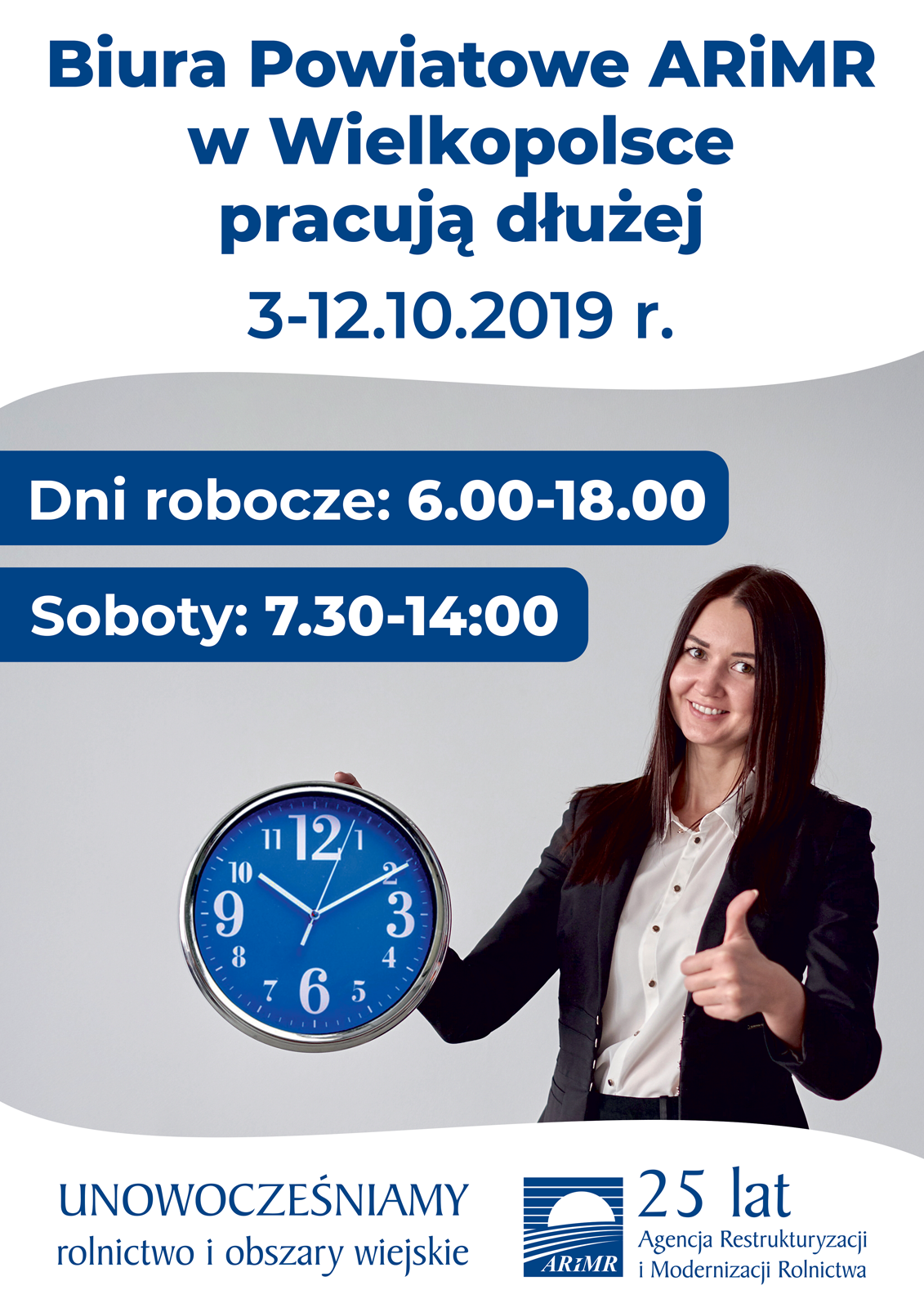 ARiMR-wydłużone godziny pracy Biura Szczegóły publikacji Wprowadzenie informacji: Joanna Trela Data wprowadzenia: 2019-09-30 09:20 Ostatnia modyfikacja: Joanna Trela Data ostatniej modyfikacji: 2019-09-30 09:21 Odsłon: 341