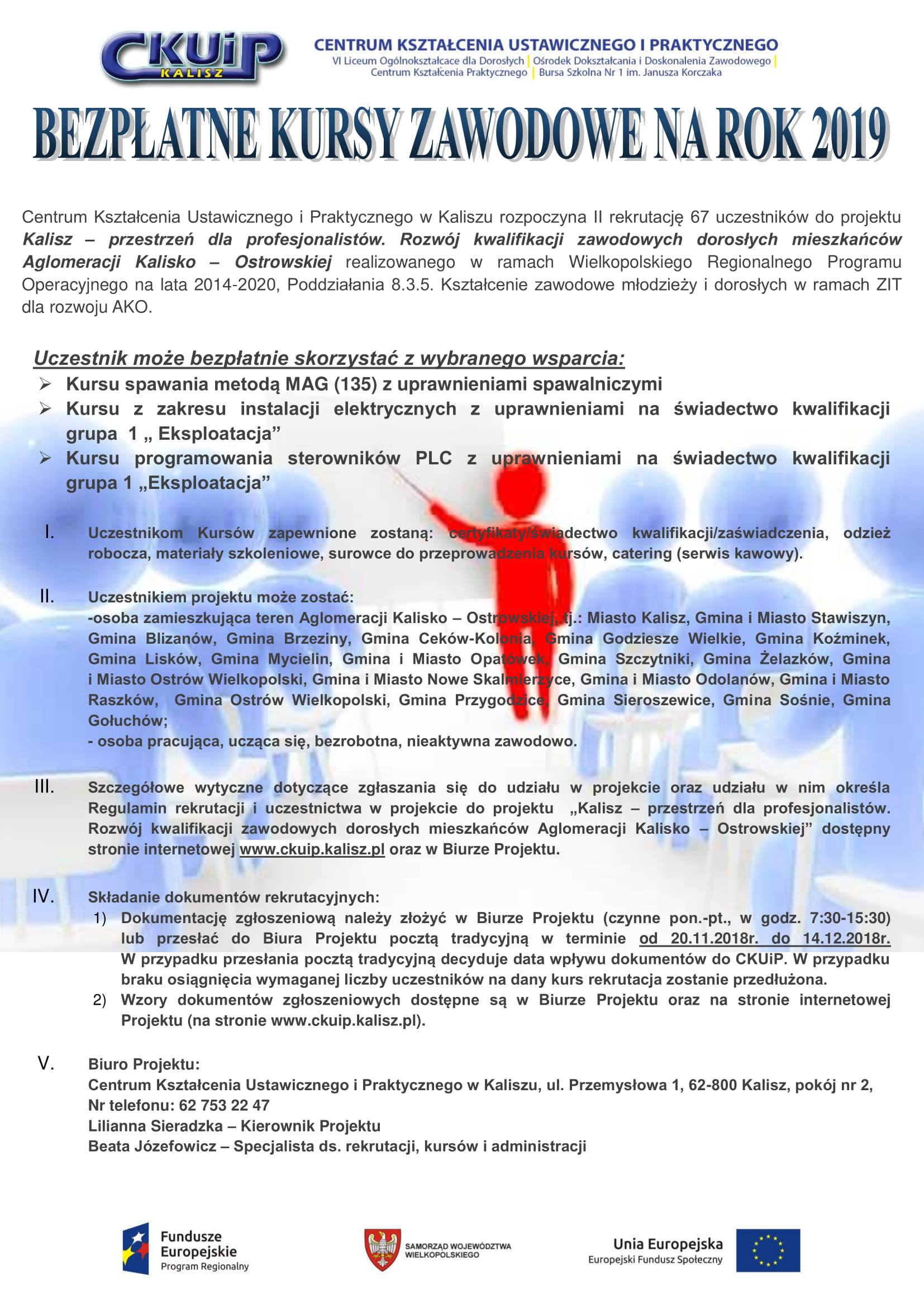 Bezpłatne kursy zawodowe na rok 2019 Szczegóły publikacji Wprowadzenie informacji: Mirosława Kubacka Data wprowadzenia: 2018-11-28 07:07 Ostatnia modyfikacja: Mirosława Kubacka Data ostatniej modyfikacji: 2018-11-28 07:08 Odsłon: 337