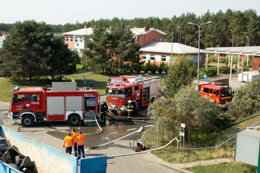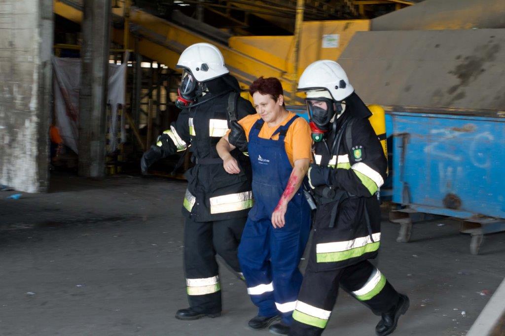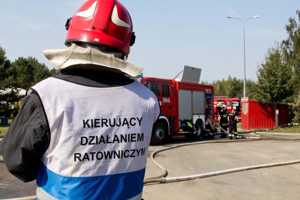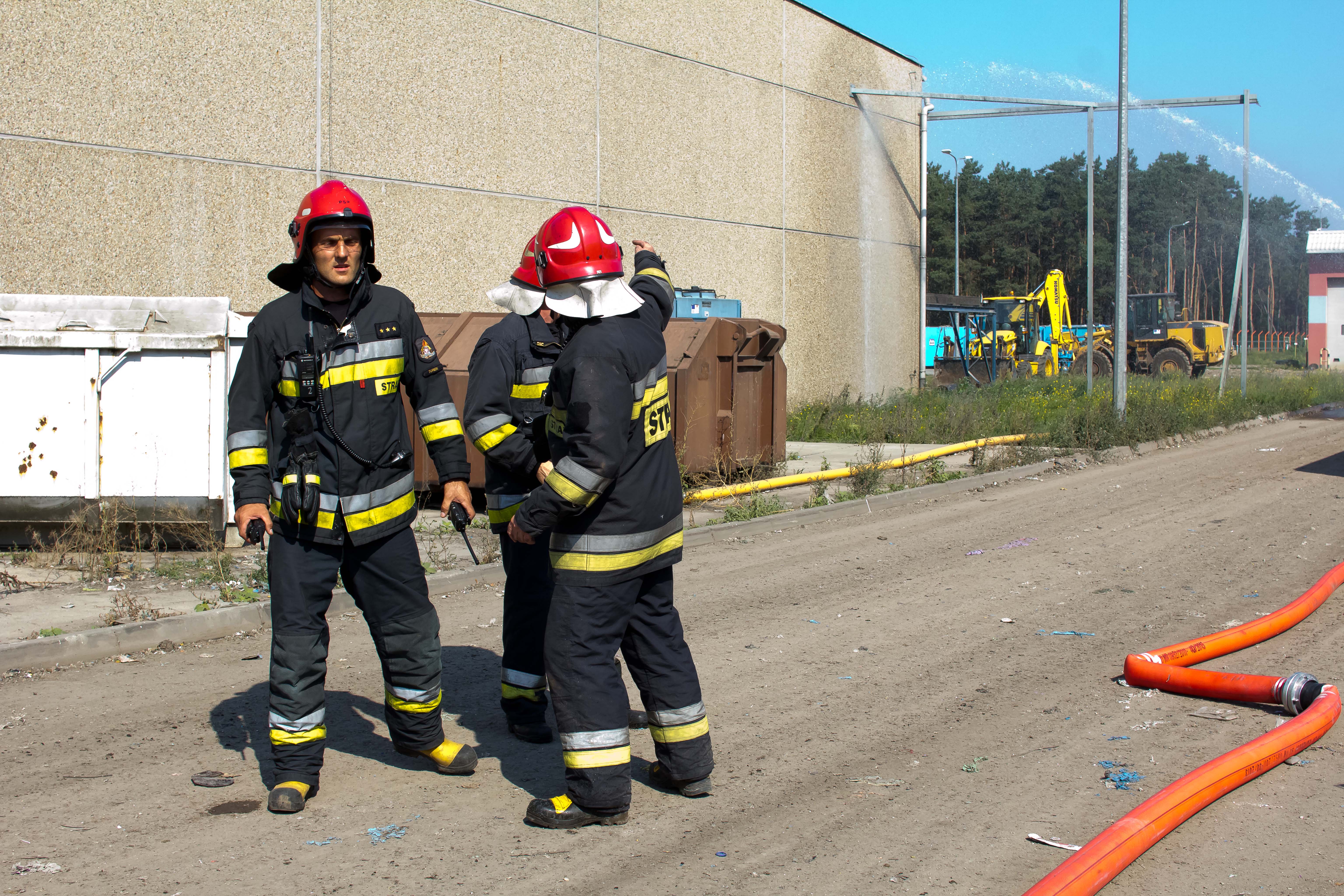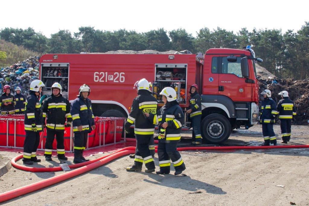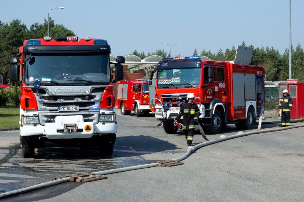 z przeszkolonymi w tym zakresie pracownikami zakładu. W akcji sprawdzono również działanie systemu dostarczania wody w miejsce pożaru oraz zakładowy sprzęt gaśniczy w tym dwa działka wodne i pompę z napędem spalinowym. W sumie w akcji uczestniczyło 57 strażaków, 15 wozów bojowych, w tym samochód dowodzenia