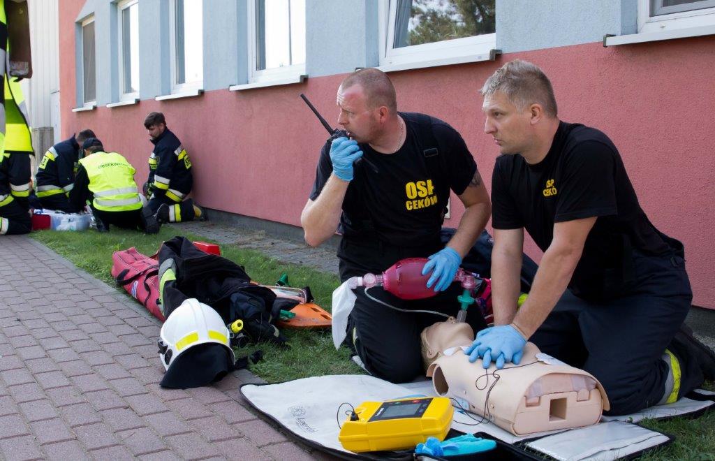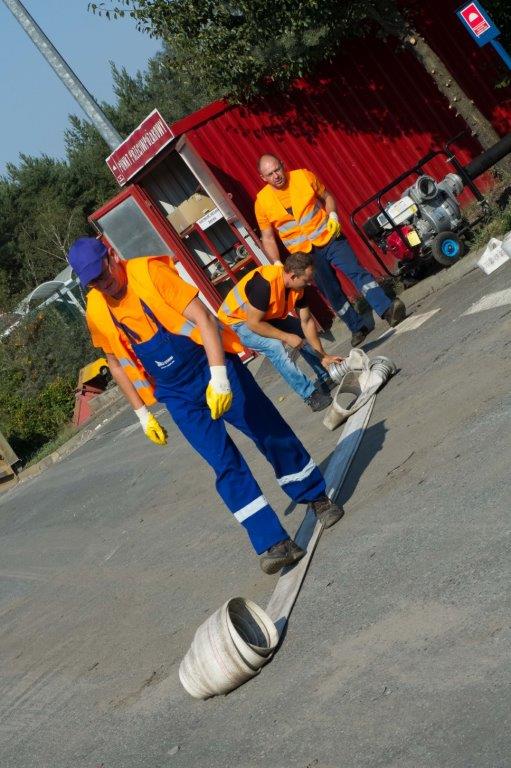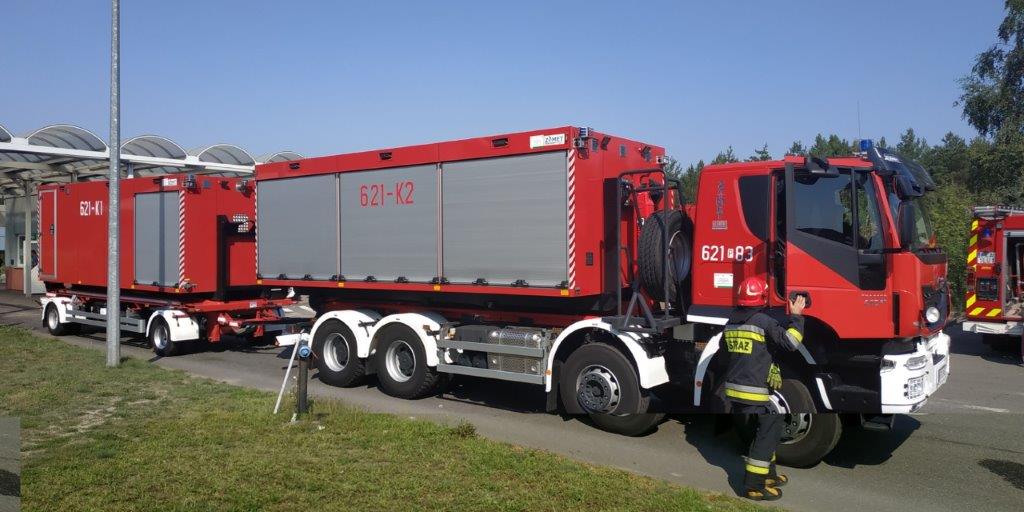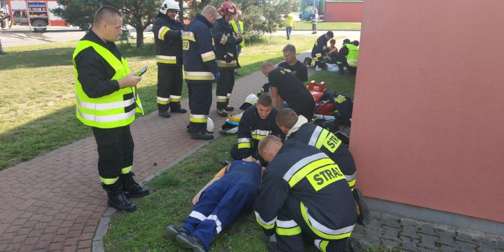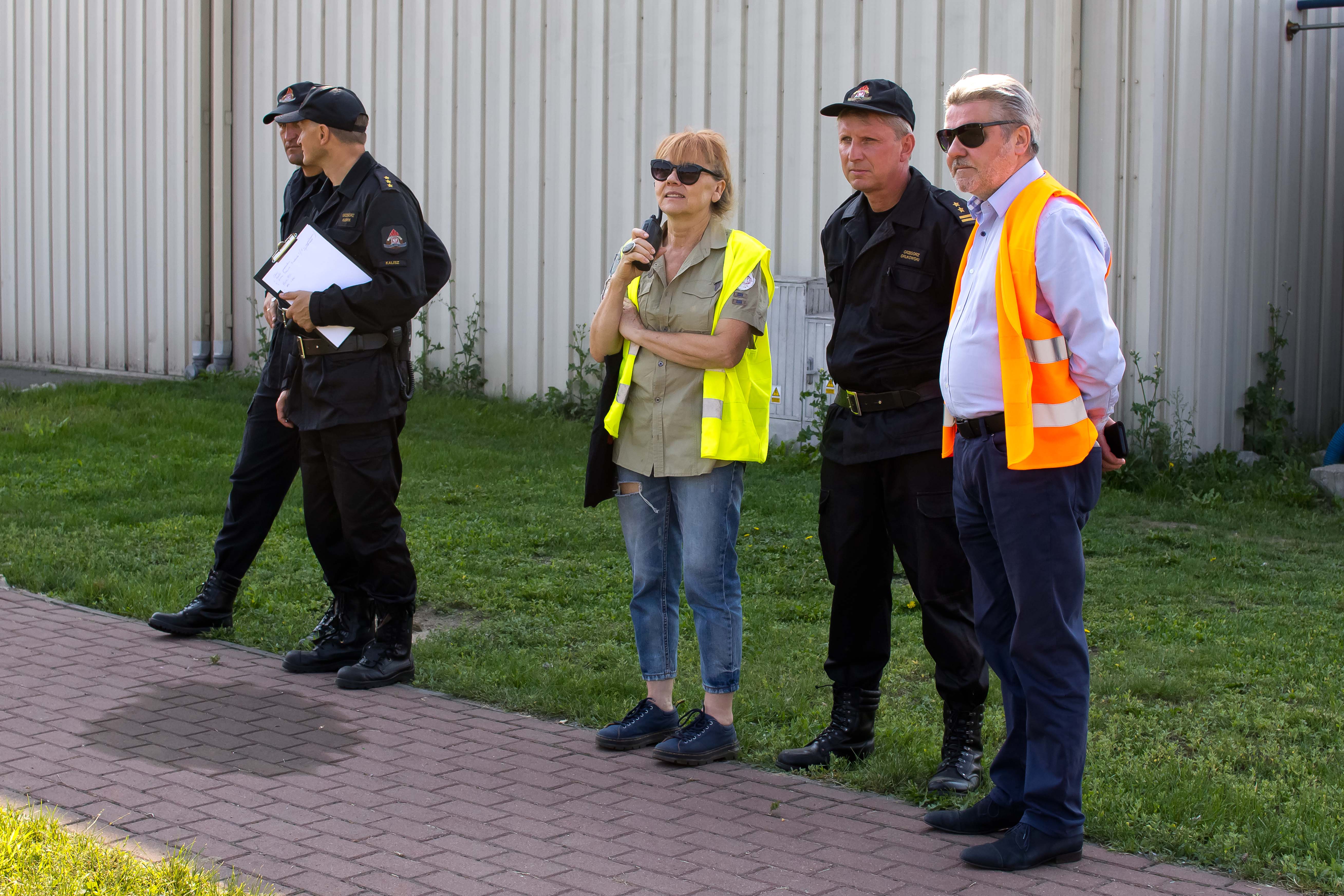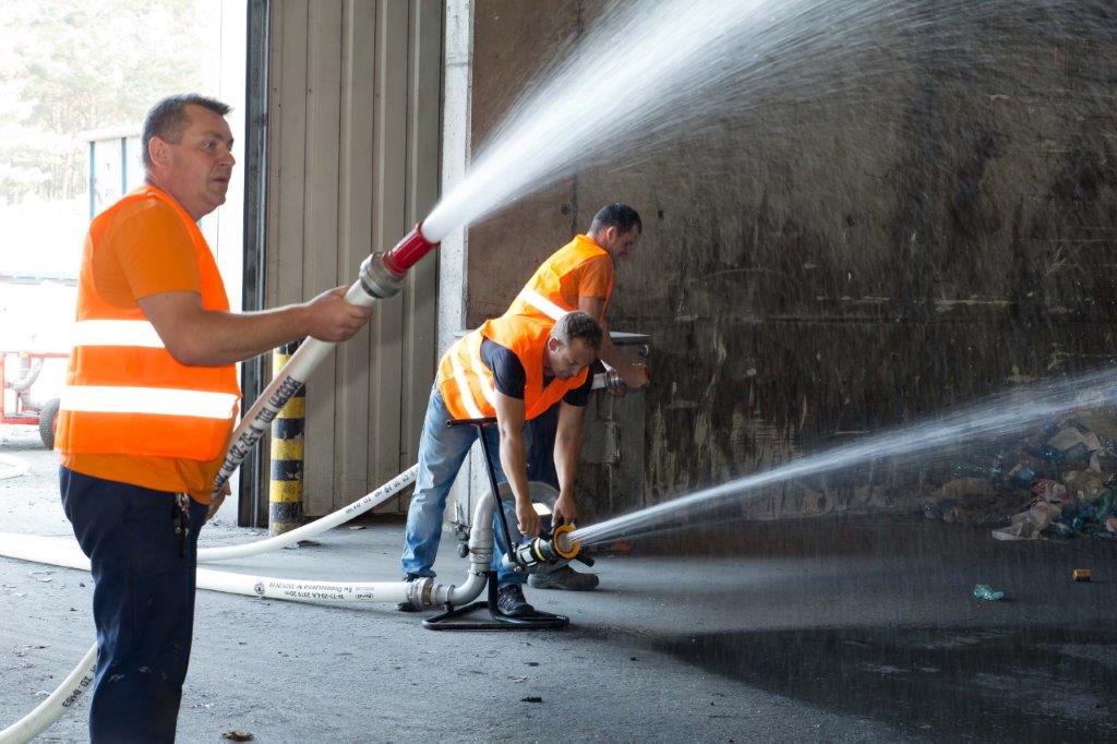 z przeszkolonymi w tym zakresie pracownikami zakładu. W akcji sprawdzono również działanie systemu dostarczania wody w miejsce pożaru oraz zakładowy sprzęt gaśniczy w tym dwa działka wodne i pompę z napędem spalinowym. W sumie w akcji uczestniczyło 57 strażaków, 15 wozów bojowych, w tym samochód dowodzenia