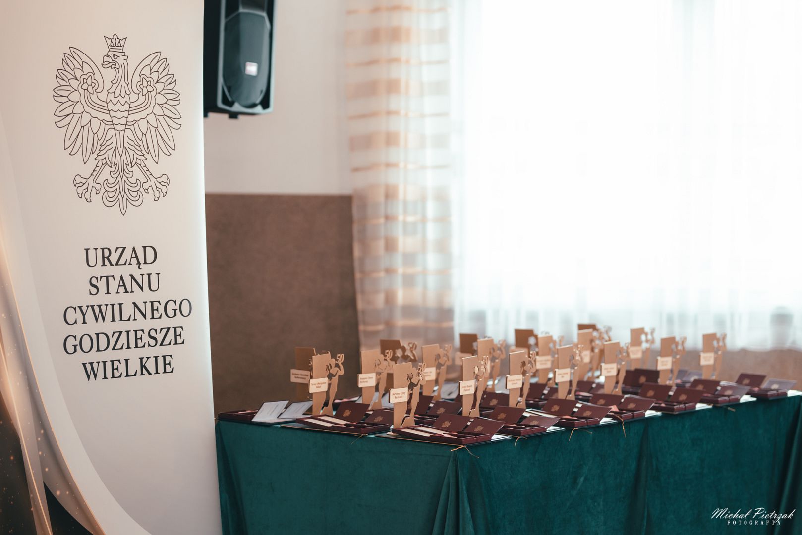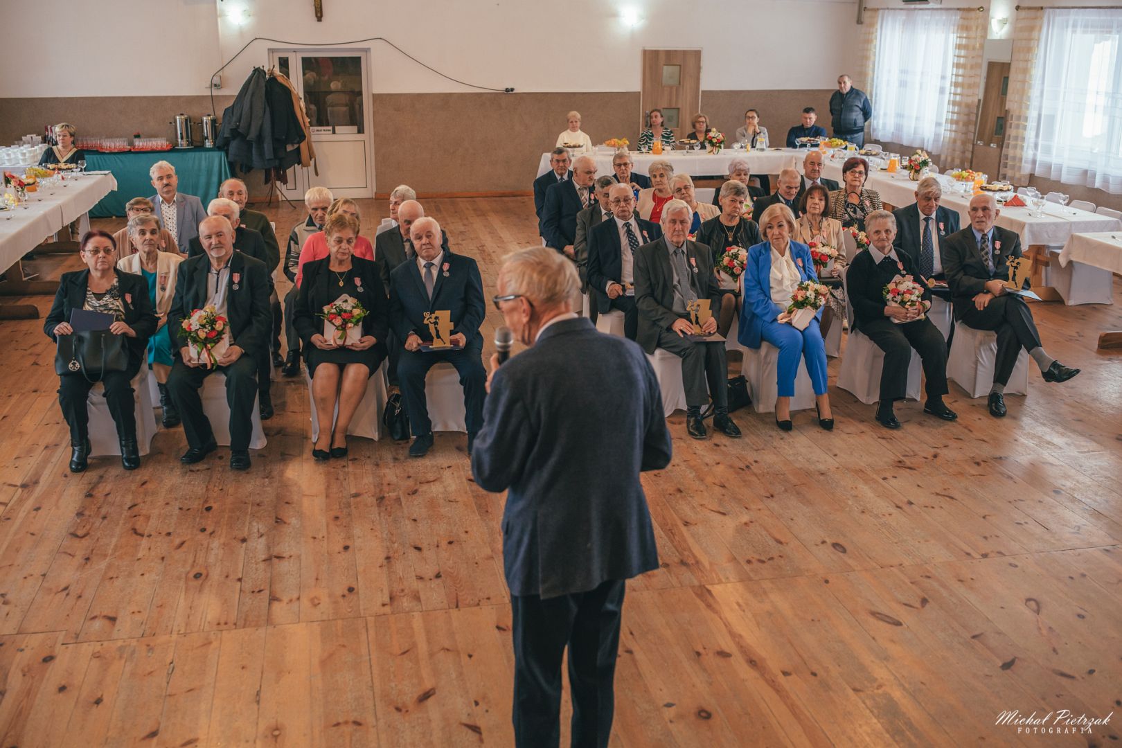 Uroczystość rozpoczęła się od wystąpienia Józefa Podłużnego – Wójta Gminy Godziesze Wielkie, który powitał wszystkich zgromadzonych i pod adresem dostojnych Jubilatów skierował słowa uznania i podziękowania za godne i długie pożycie małżeńskie. Oprócz medali Jubilaci otrzymali pamiątkowe listy gratulacyjne oraz kwiaty. Nie zabrakło również tortu oraz symbolicznego toastu.