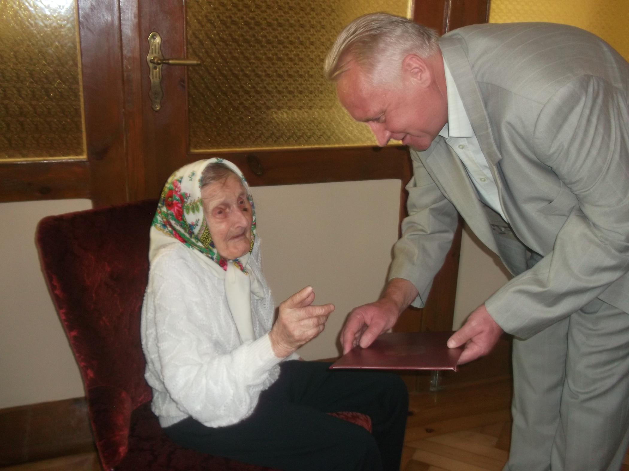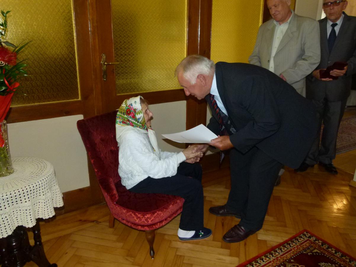 W środę 17 lipca Wójt Gminy Józef Podłużny, Przewodniczący Rady Gminy Ryszard Jarych, Kierownik USC Barbara Niciejewska oraz sołtys wsi Zygmunt Gilicki w imieniu władz Gminy i jej mieszkańców złożyli najserdeczniejsze życzenia z okazji jubileuszu 100-nych urodzin Pani Wiktorii Kupaj.