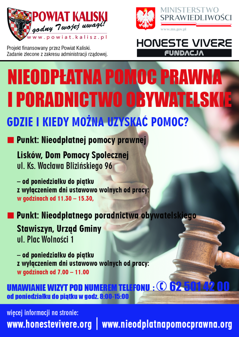 Nieodpłatna pomoc prawna i poradnictwo obywatelskie na terenie powiatu kaliskiego