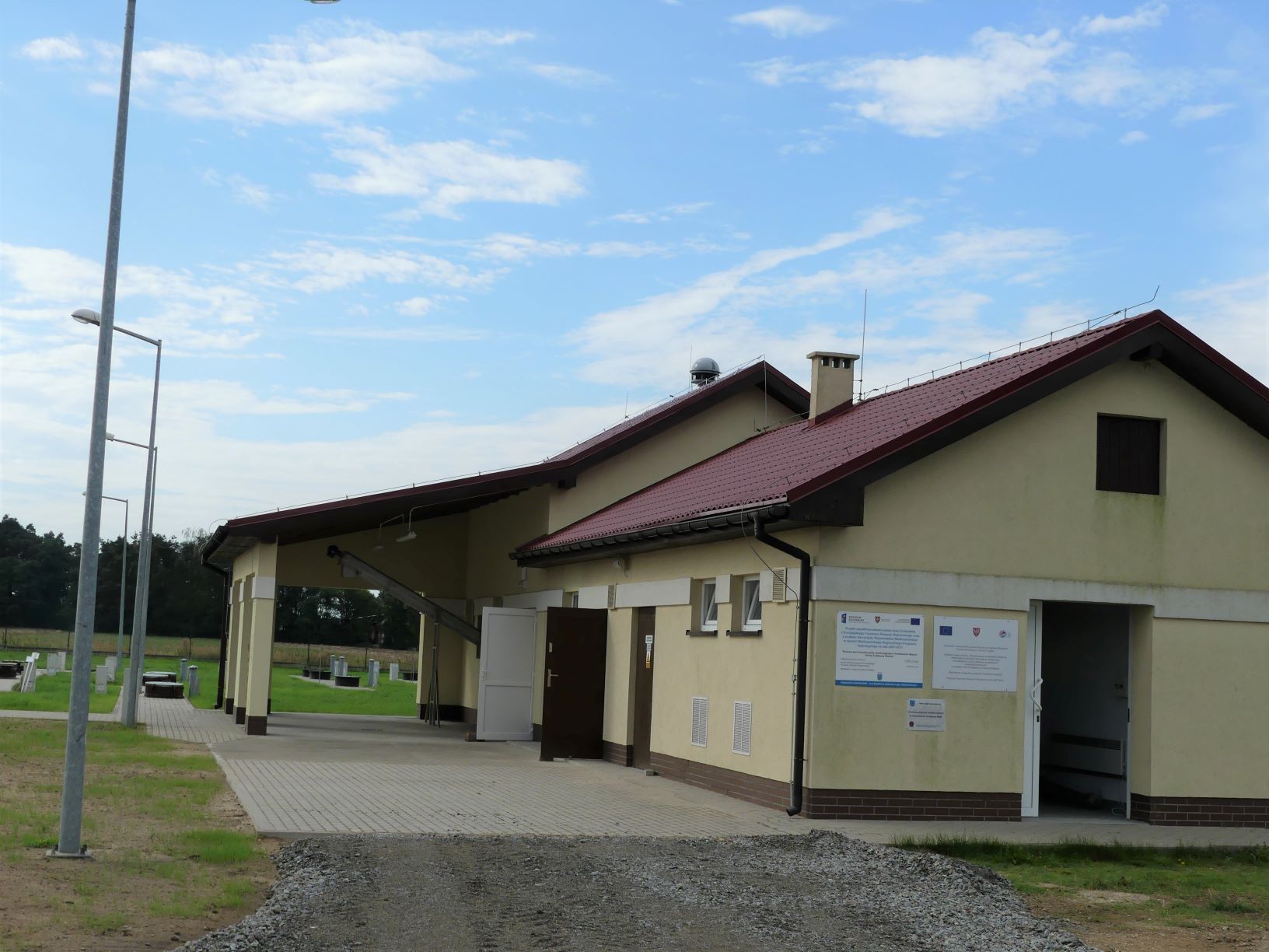 Rozbudowywana i modernizowana w ramach projektu oczyszczalnia ścieków w Godzieszach Małych to nowoczesny, ładny architektonicznie obiekt, wkomponowany w zabudowę wsi Godziesze Małe, co ukazują prezentowane poniżej zdjęcia: