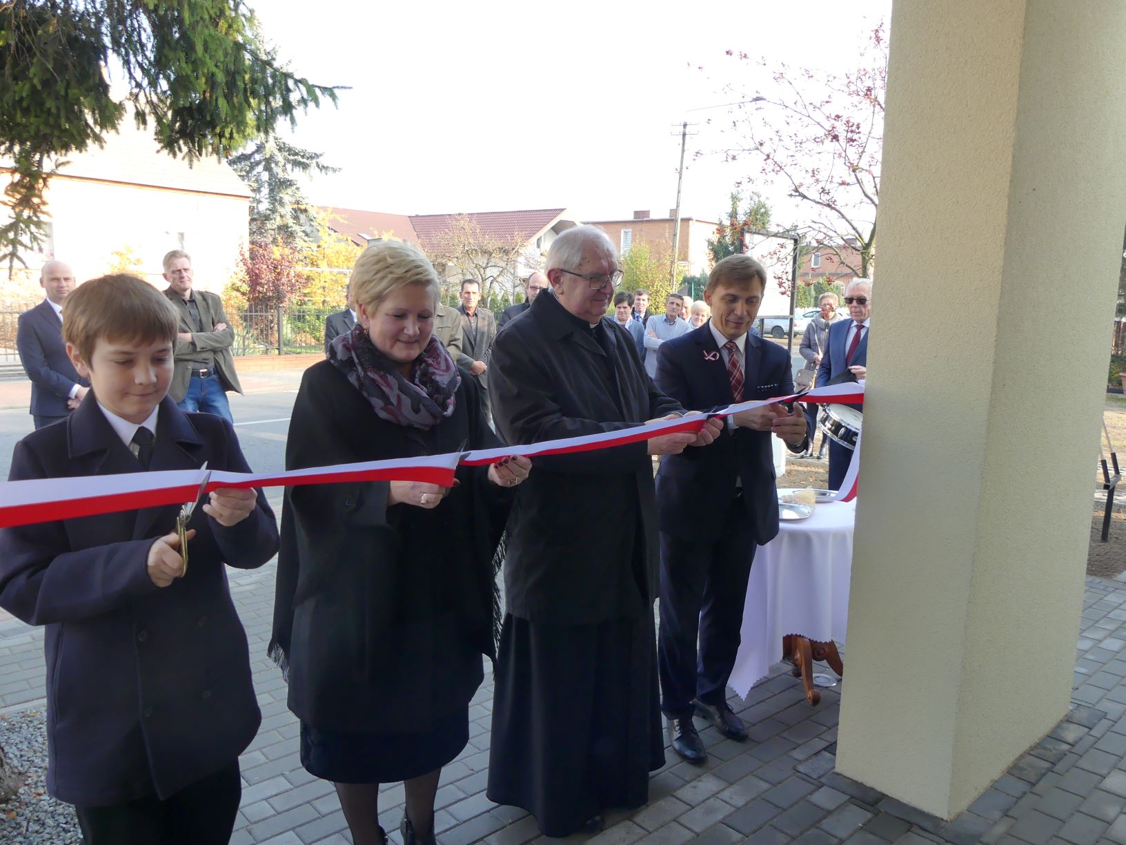 W uroczystości otwarcia budynku uczestniczyli: Księża z Parafii Godziesze Wielkie (to dzięki współpracy z Parafią uzyskaliśmy możliwość powiększenia trenu inwestycji o duży parking), pan Starosta Kaliski, Radni Gminy Godziesze Wielkie oraz muzycy orkiestry OSP w Godzieszach.