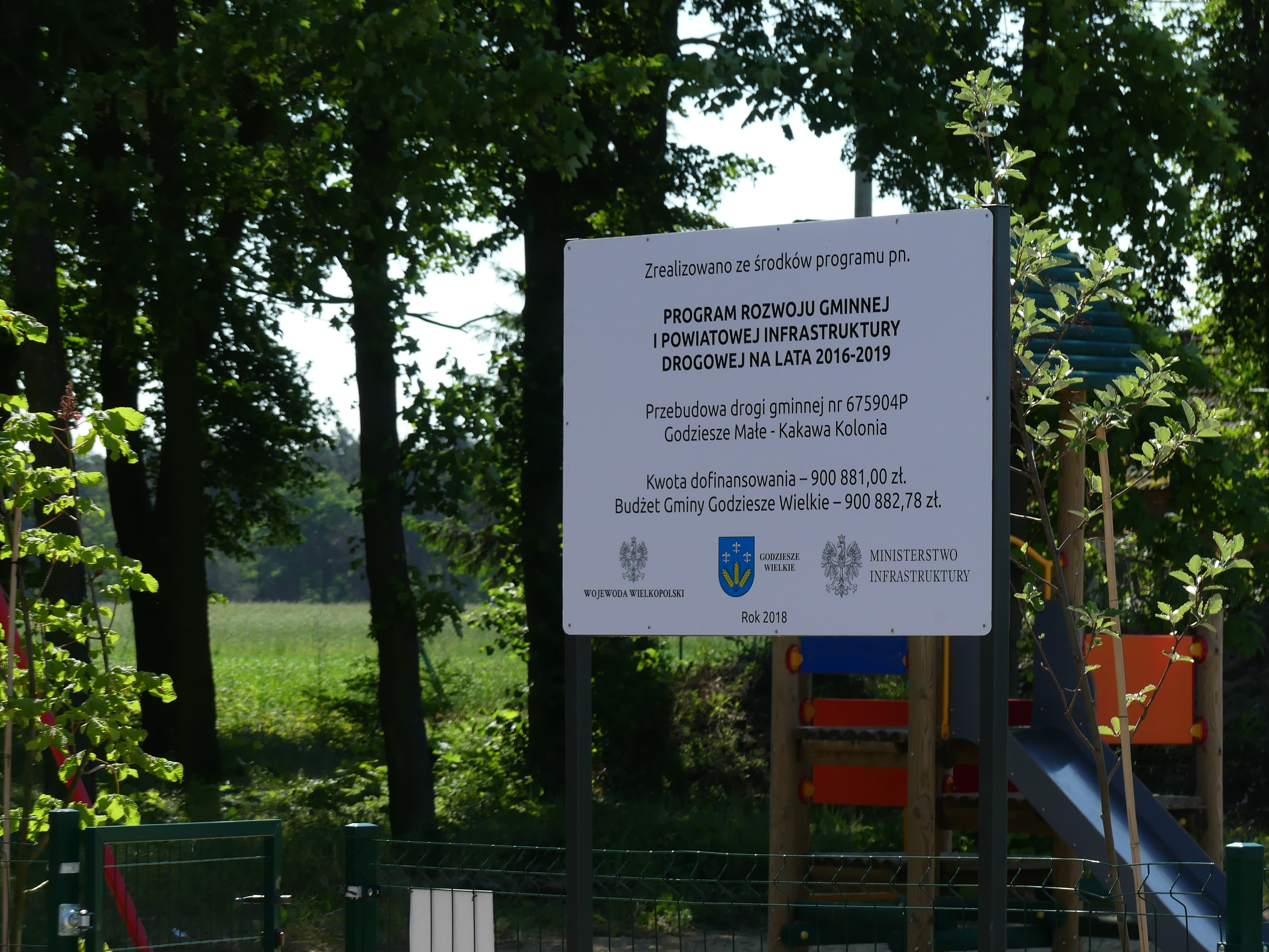 Droga powstała dzięki dotacji celowej z budżetu państwa przekazanej przez Wojewodę Wielkopolskiego w ramach Programu rozwoju gminnej i powiatowej infrastruktury drogowej na lata 2016-2019 na dofinasowanie zadania „Przebudowa drogi gminnej nr 675904P Godziesze małe – Kakawa Kolonia” w łącznej kwocie 900 881,00 złotych.