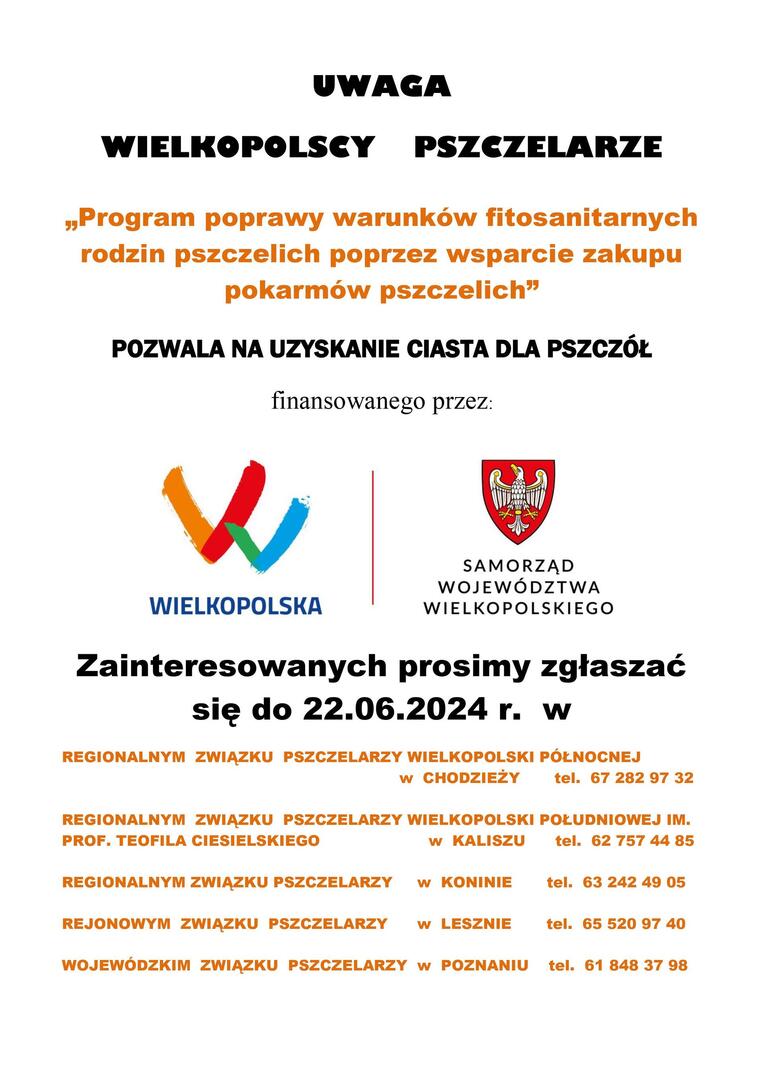 "Program poprawy warunków fitosanitarnych rodzin pszczelich poprzez wsparcie zakupu pokarmów pszczelich"