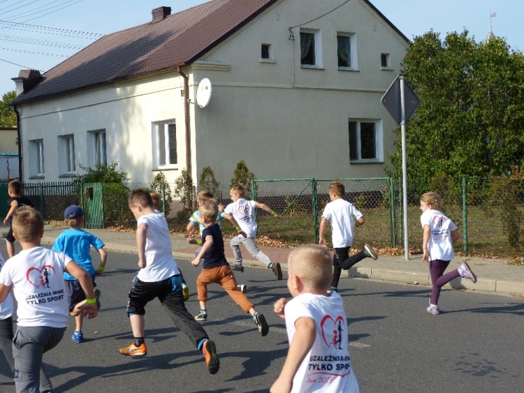 Nie o miejsce na podium jednak chodziło. Najważniejsze jest to, że przy pięknej pogodzie, duża grupa dzieci i ich rodziców spotkała się na świeżym powietrzu, aby konkurować w przyjaznej atmosferze w rodzinnych biegach. Uśmiech dzieci - bezcenny!