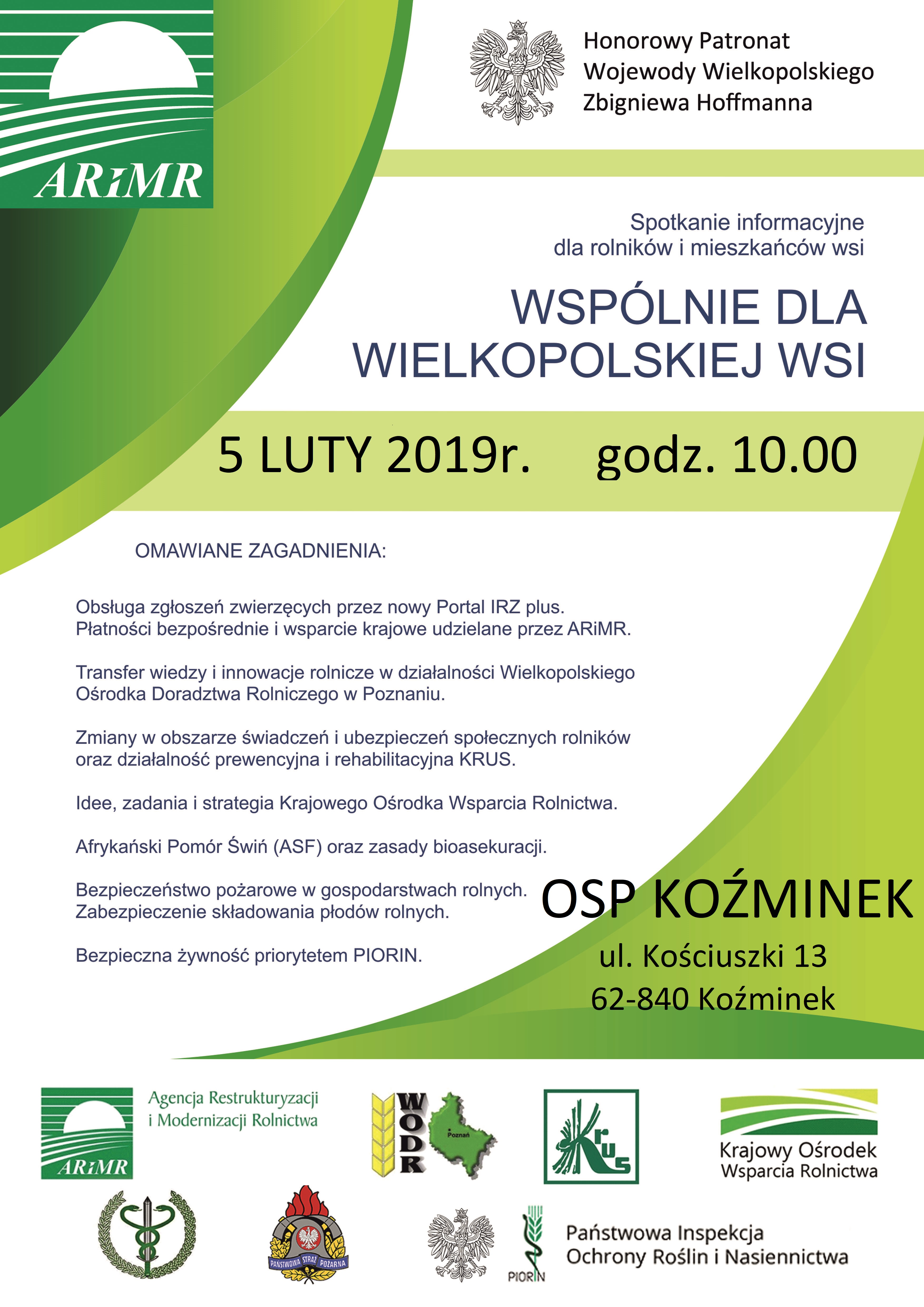 Spotkanie skierowane do rolników "Wspólnie dla wielkopolskiej wsi" Informacja Agencji Restrukturyzacji i Modernizacji Rolnictwa dotycząca spotkania skierowanego do rolników pod roboczym tytułem "Wspólnie dla wielkopolskiej wsi" Kurenda spotkań z rolnikami "Wspólnie dla wielkopolskiej wsi" organizowanych pod patronatem Wojewody Wielkopolskiego Szczegóły publikacji Wprowadzenie informacji: Joanna Trela Data wprowadzenia: 2019-01-11 06:58 Ostatnia modyfikacja: Joanna Trela Data ostatniej modyfikacji: 2019-01-15 08:41 Odsłon: 344