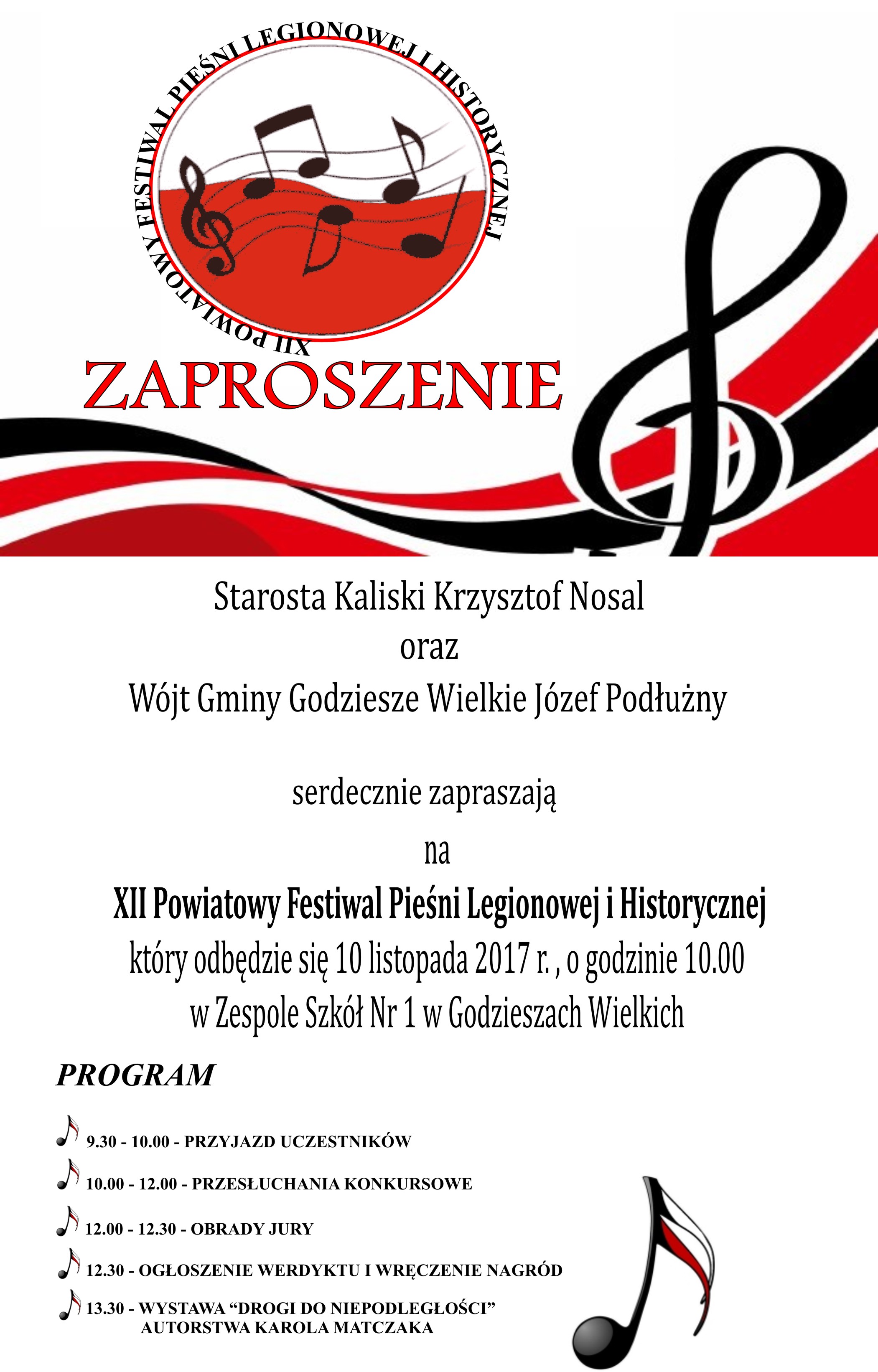 Starosta Kaliski oraz Wójt Gminy Godziesze Wielkie zapraszają na XII Powiatowy Festiwal Pieśni Legionowej i Historycznej