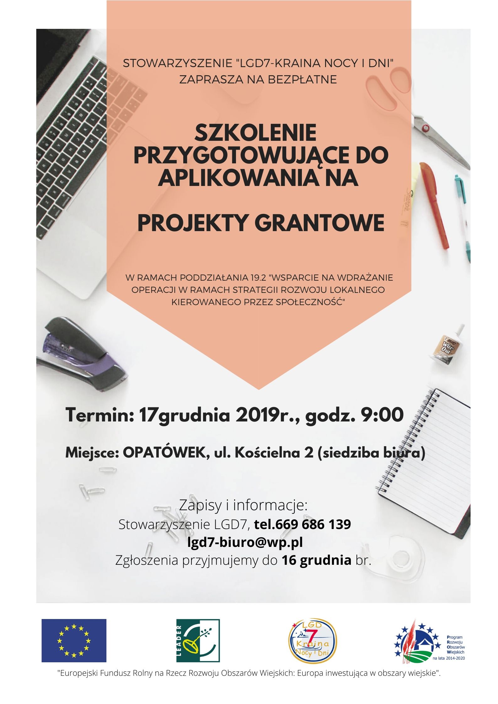 Stowarzyszenie "LGD& Kraina Nocy i Dni" zaprasza na szkolenie przygotowujące do aplikowania na projekty grantowe