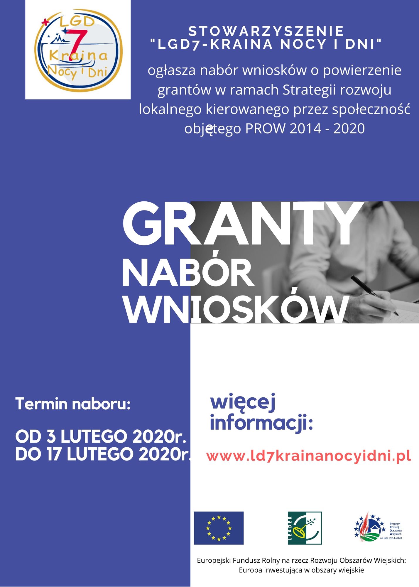 Stowarzyszenie "LGD7 - Kraina Nocy i Dni" ogłasza nabór wniosków o powierzenie grantów w ramach Strategii rozwoju lokalnego kierowanego przez społeczność objętego PROW 2014-2020
