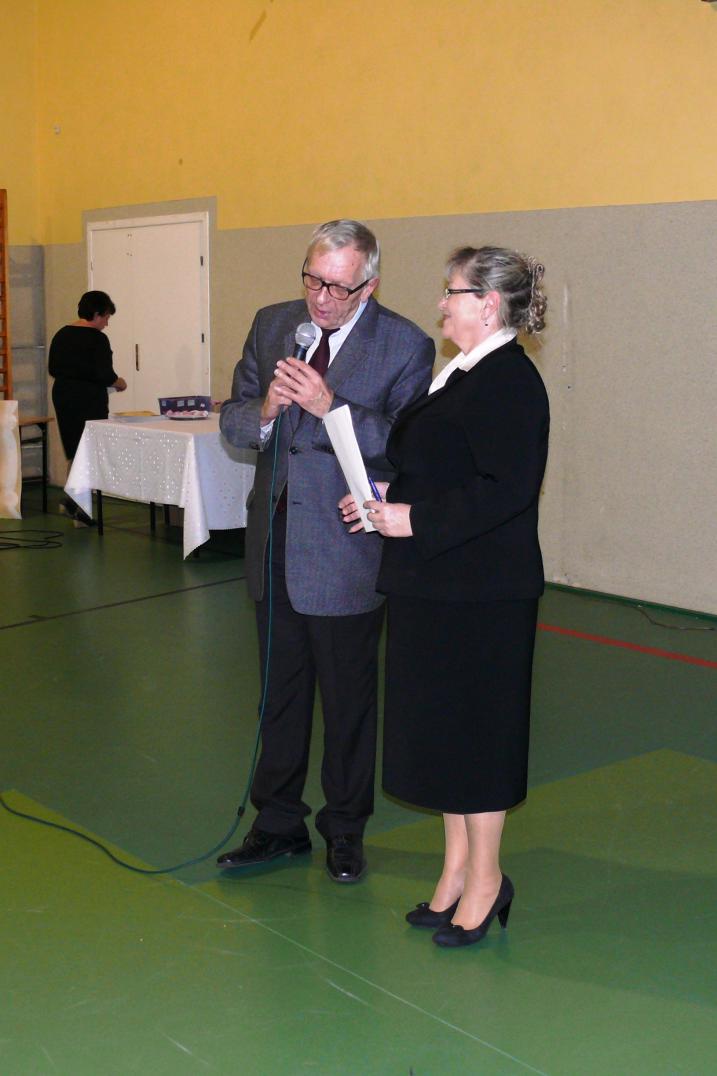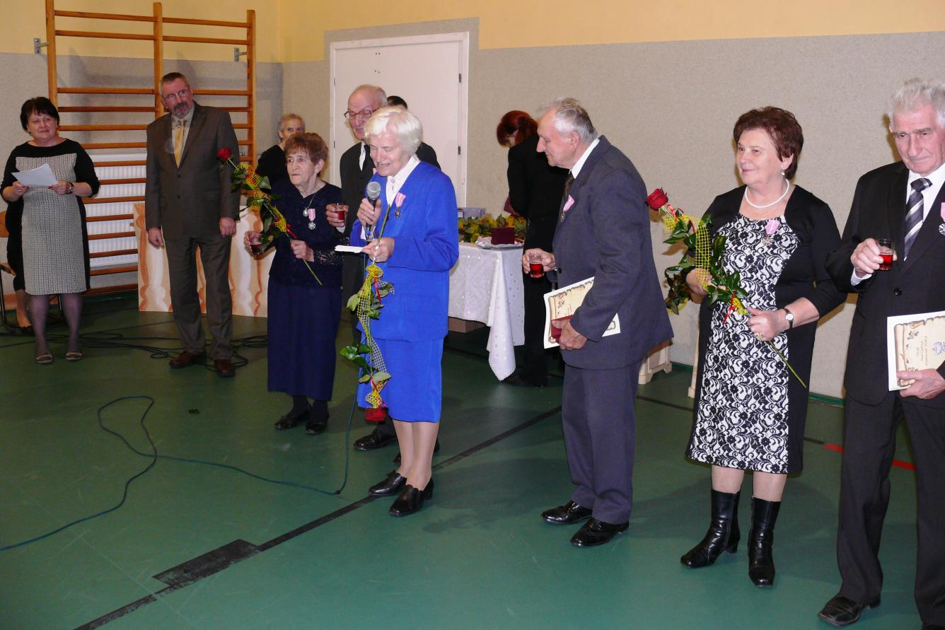 Po występach uczniów - Vicestarosta kaliski Andrzej Dolny oraz Wójt Gminy Godziesze Wielkie Józef Podłużny wręczyli przyznane im przez Prezydenta Rzeczypospolitej Polskiej "Medale za Długoletnie Pożycie Małżeńskie".