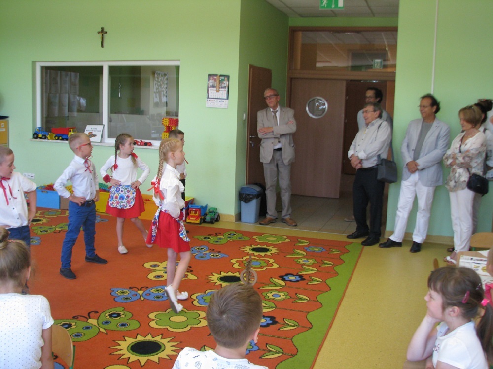 Duże wrażenie na gościach wywarła wizyta w przedszkolu i Szkole Podstawowej w Godzieszach; przede wszystkim warunki do nauki, sportu i zabawy dla uczniów i wychowanków.