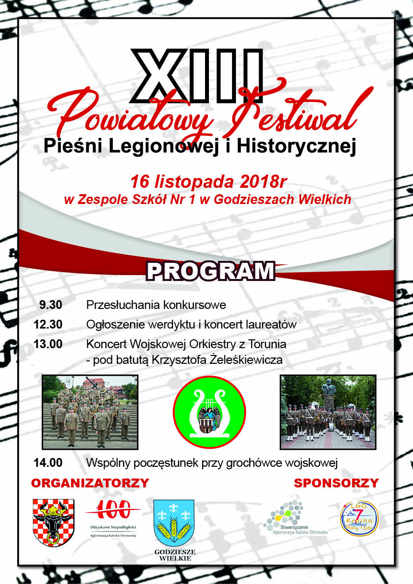 XIII Powiatowy Festiwal Pieśni Legionowej i Historycznej 16 listopada 2018 roku w Zespole Szkół Nr 1 w Godzieszach Wielkich