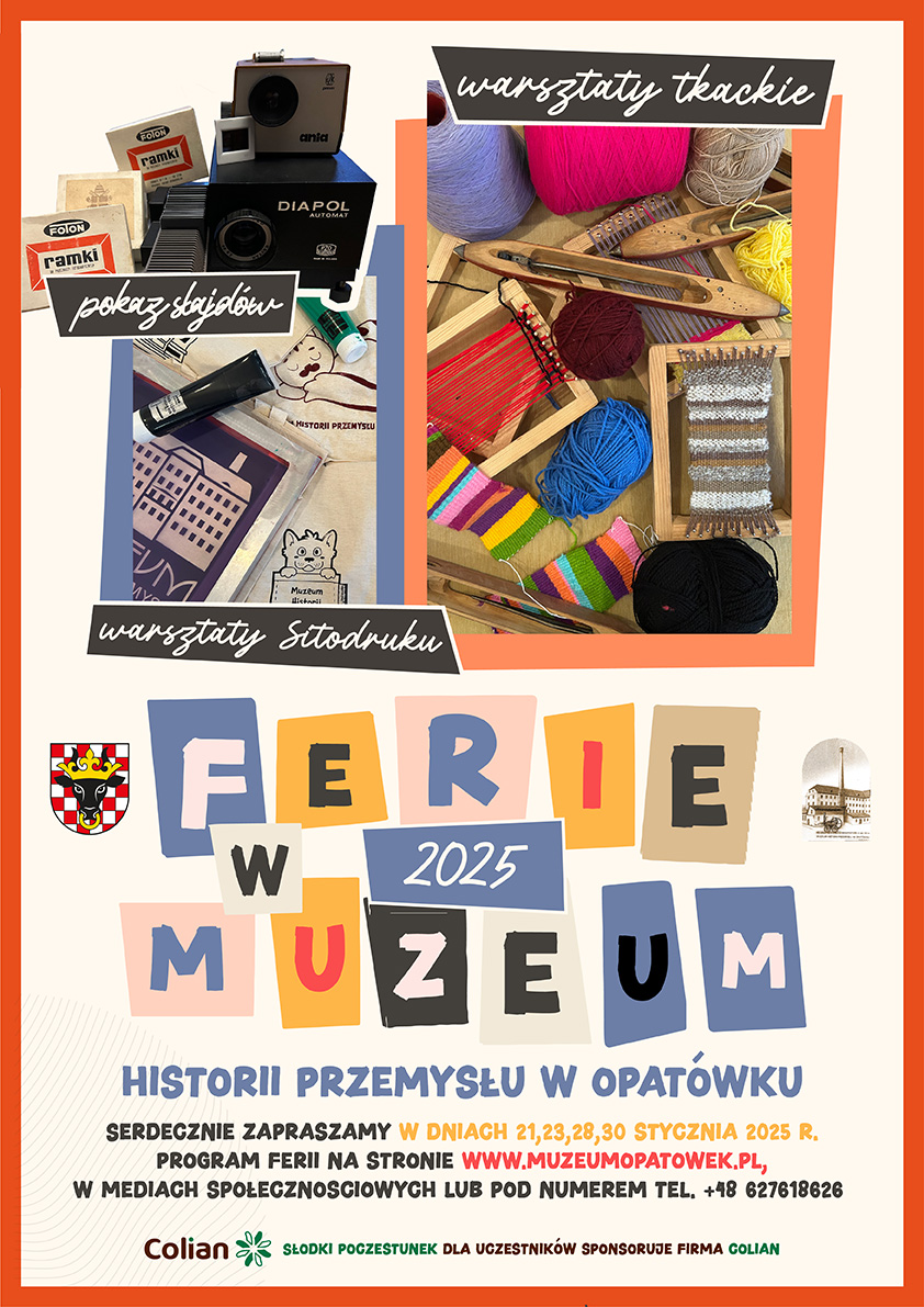 - 13.40 – wręczenie dyplomu potwierdzającego udział w „Feriach w Muzeum Historii Przemysłu w Opatówku”.