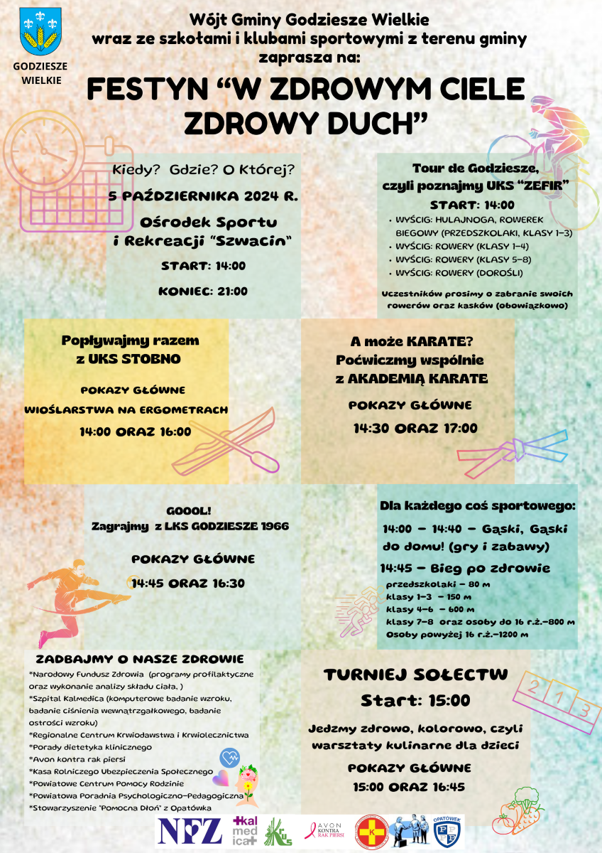 Zaproszenie na festyn "W zdrowym ciele zdrowy duch" - 5 październik 2024r