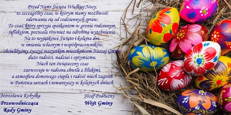 Życzenia świąteczne dla mieszkańców Gminy Godziesze Wielkie Szczegóły publikacji Wprowadzenie informacji: Joanna Trela Data wprowadzenia: 2019-04-18 09:25 Ostatnia modyfikacja: Joanna Trela Data ostatniej modyfikacji: 2019-04-18 09:27 Odsłon: 368