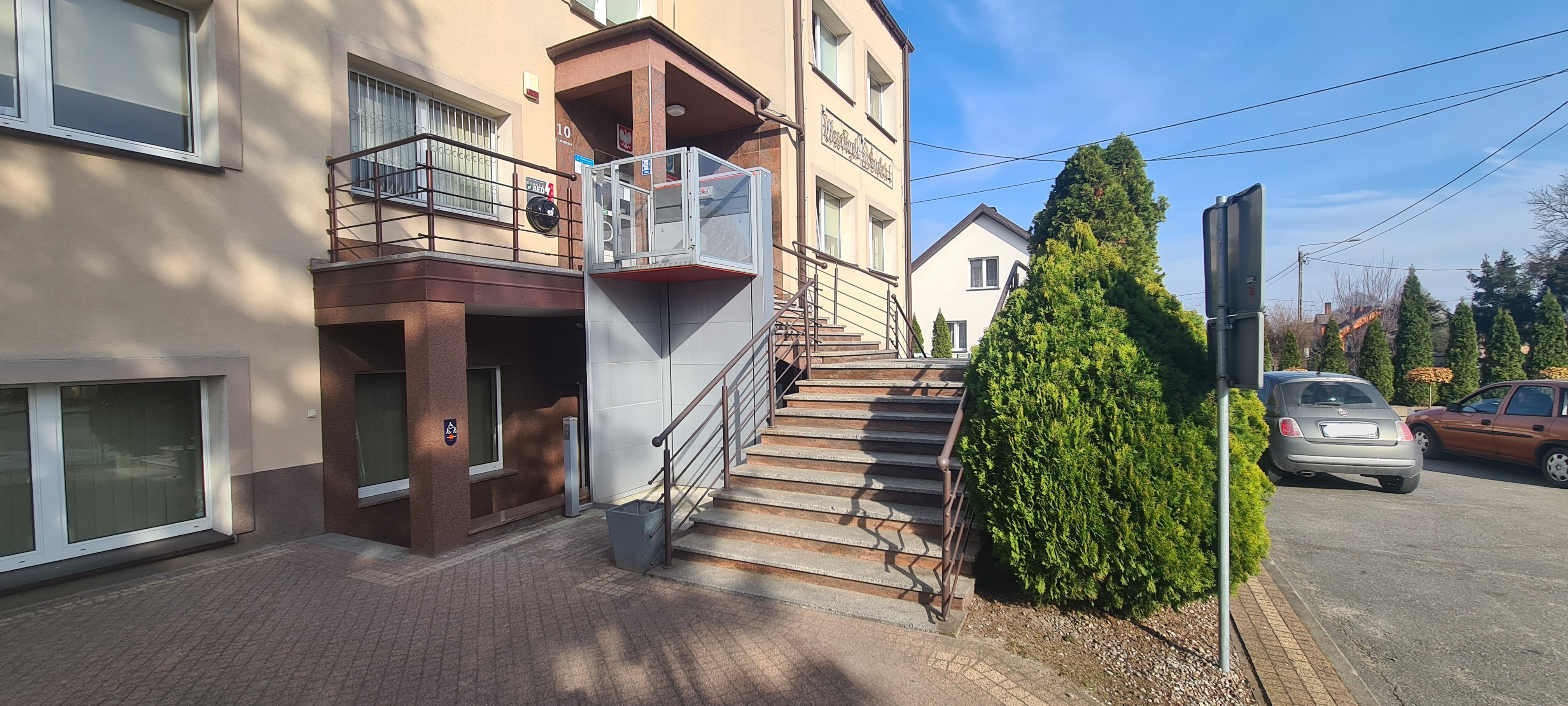 Do budynku można wejść po schodach lub wjechać za pomocą windy, której wymiary pozwalają na swobodny przejazd osobom ze szczególnymi potrzebami.