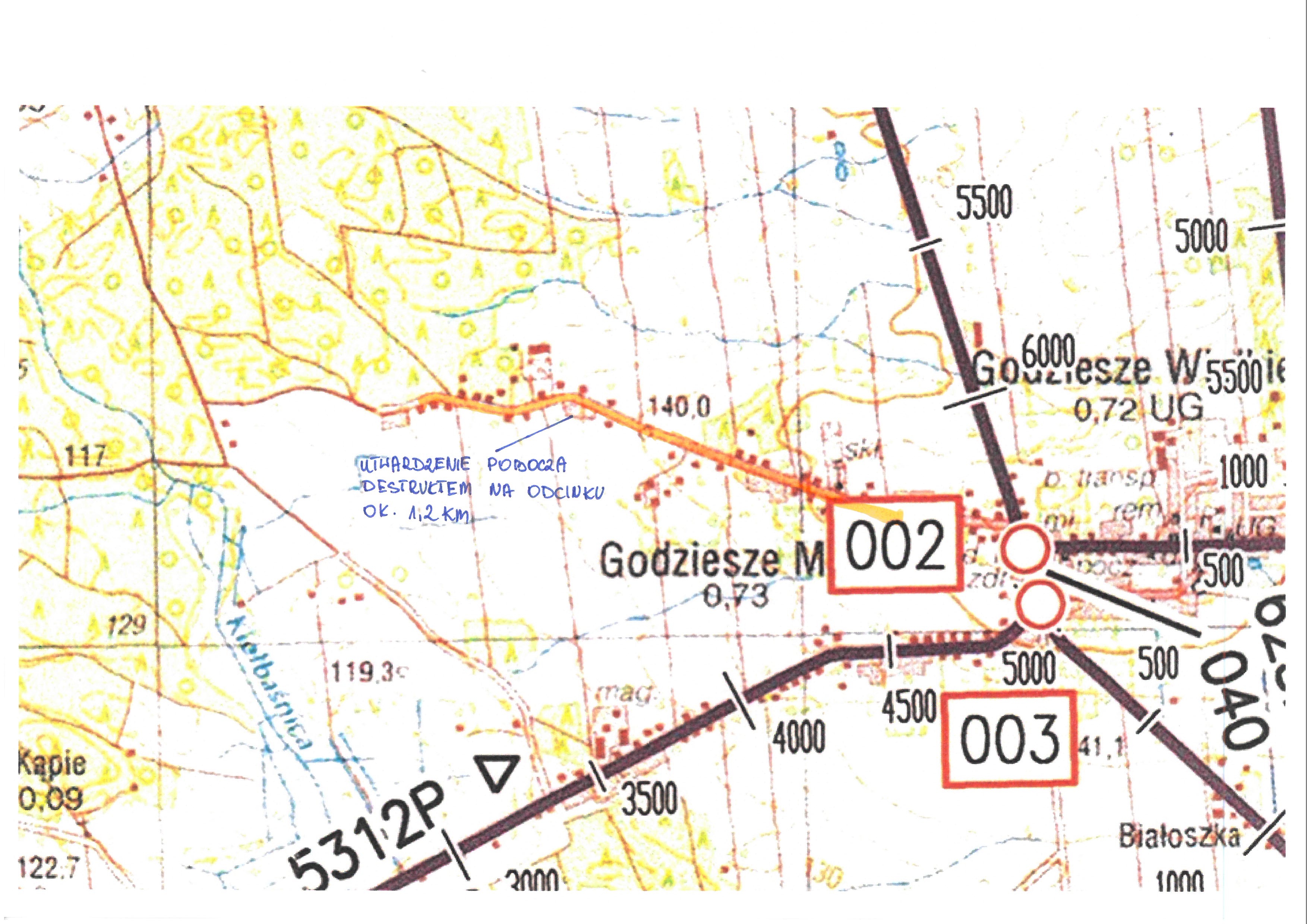 1) Krótki opis przedmiotu zamówienia (wielkość, zakres, rodzaj i ilość dostaw, usług lub robót budowlanych lub określenie zapotrzebowania i wymagań) a w przypadku partnerstwa innowacyjnego -określenie zapotrzebowania na innowacyjny produkt, usługę lub roboty budowlane:Zakres rzeczowy przedmiotu zamówienia dla Zadania oznaczonego nr 8 pn: „Przebudowa drogi gminnej nr 675900P w miejscowości Godziesze Małe, ul. Zadowicka - utwardzenie pobocza destruktem” obejmuje: - utwardzenie pobocza destruktem o szerokości 0,75 m, grubości 8 cm po zagęszczeniu i powierzchniowym utrwaleniu emulsja asfaltową i grysem kamiennym na długości ok.1,2 km Lokalizację robót dla Zadania Nr 8 przedstawia mapa, która stanowi załącznik nr 8 do SIWZ.