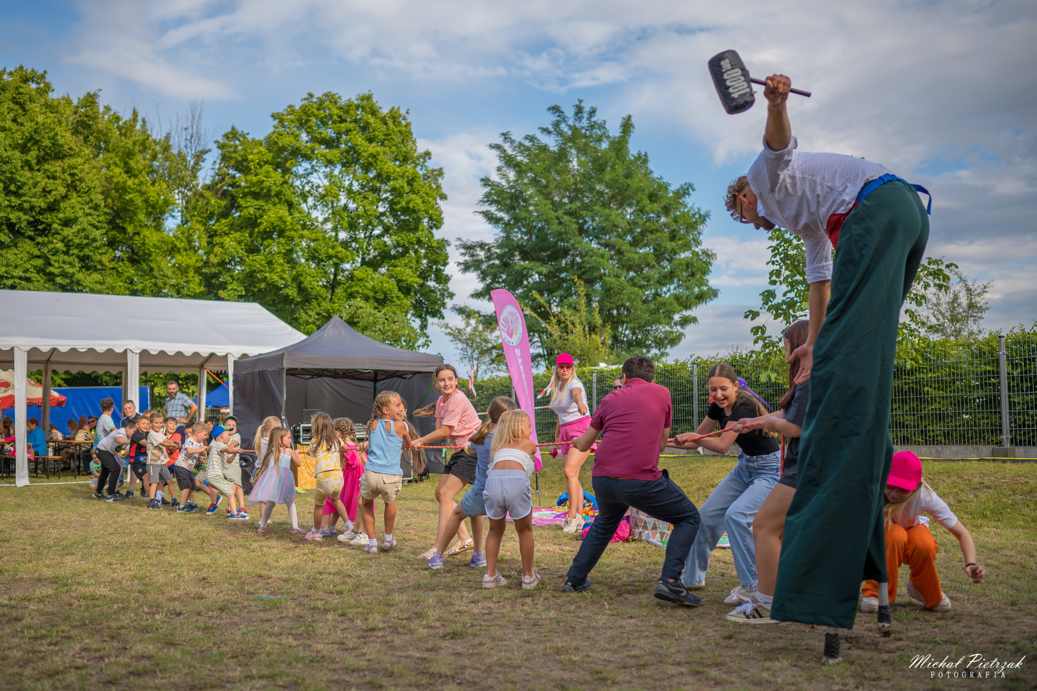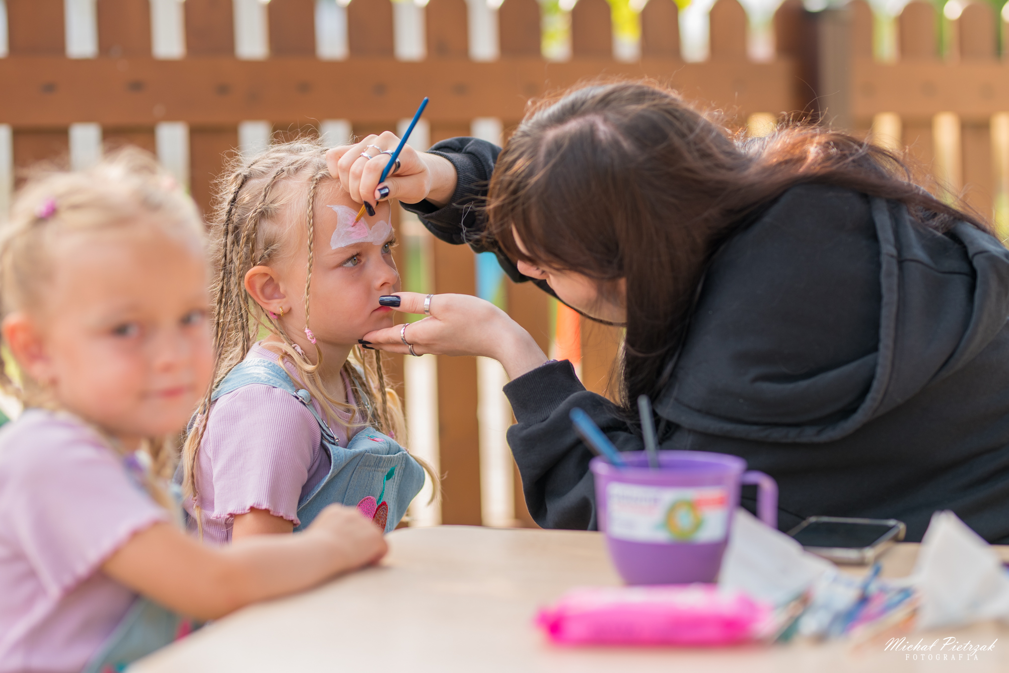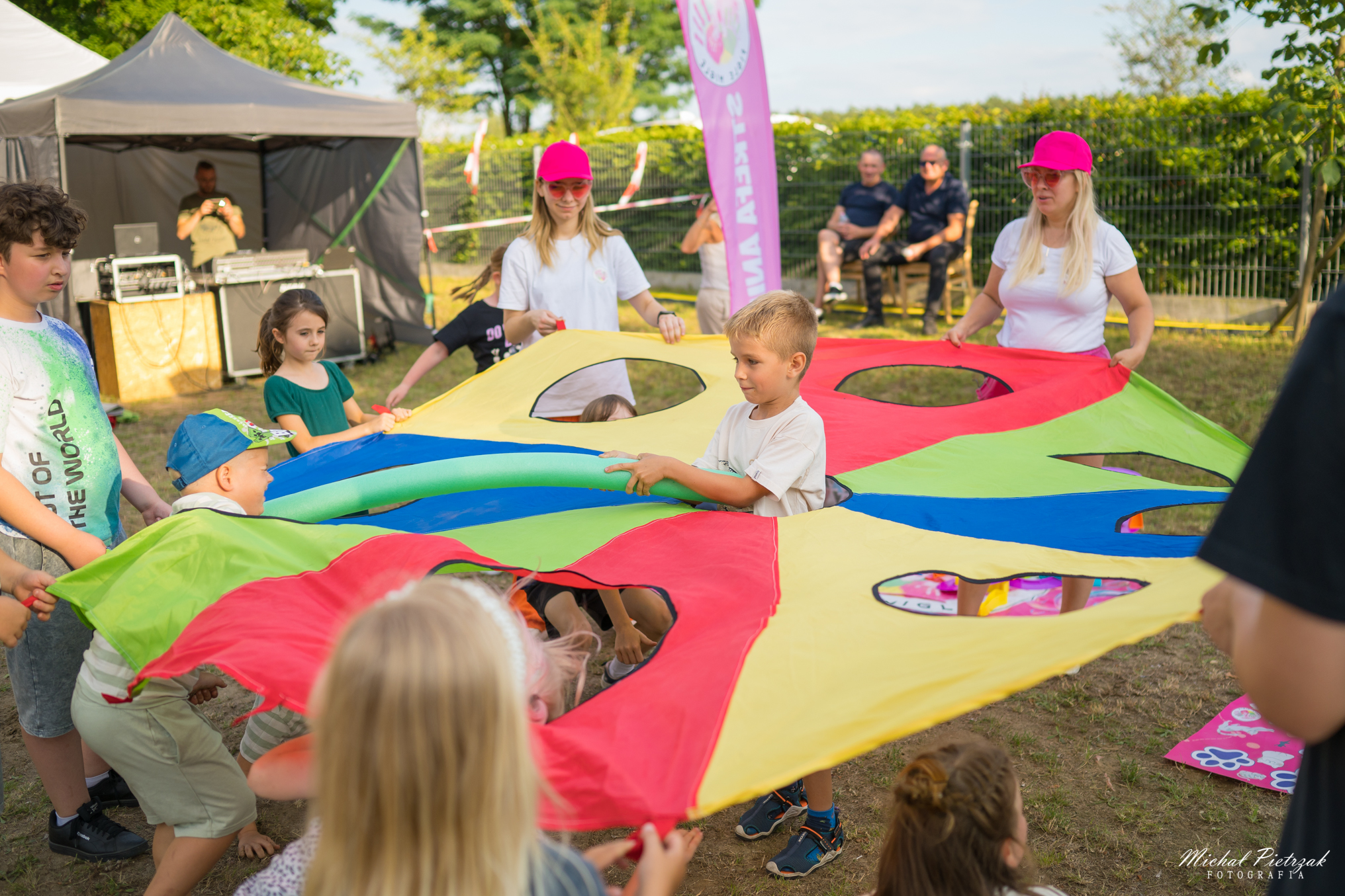 Panowała rewelacyjna atmosfera, dopisała piękna, letnia pogoda, a atrakcji nie brakowało. Dzieci korzystały z animacji, dmuchańców i malowania twarzy, a wszyscy razem bawili się świetnie podczas wspólnych zabaw i loterii fantowej.