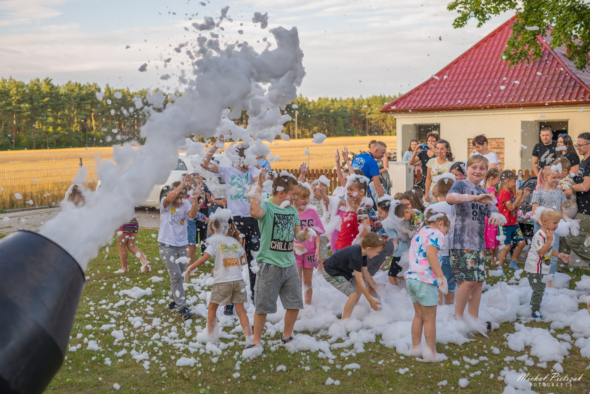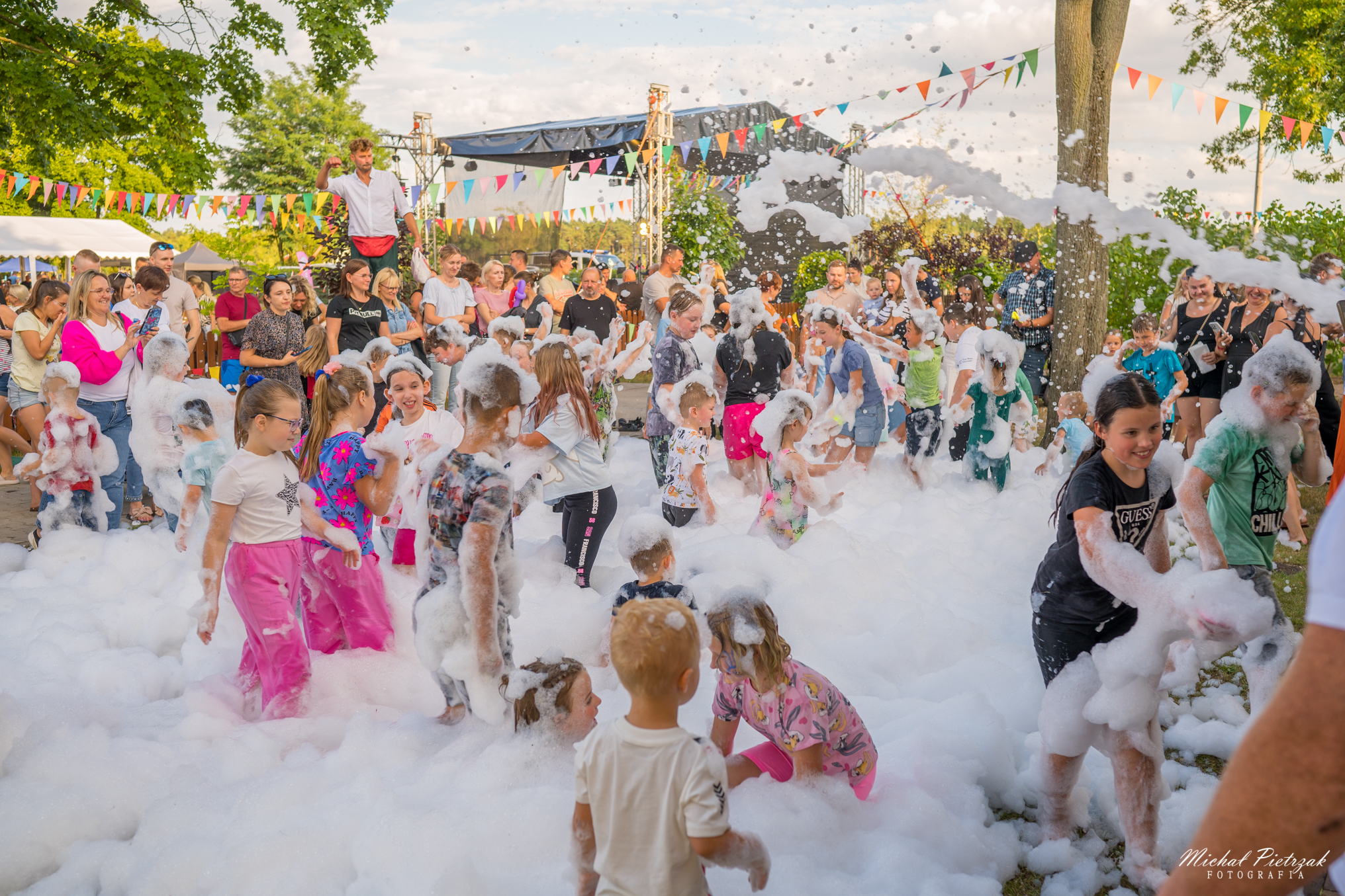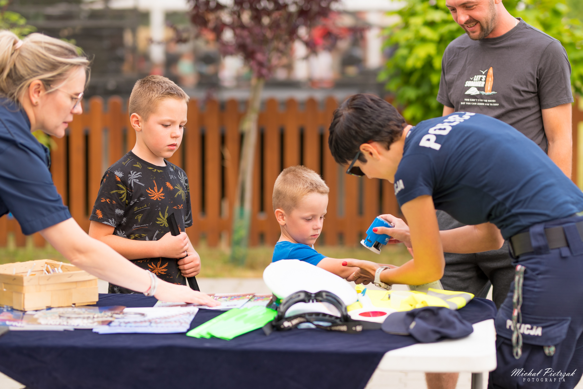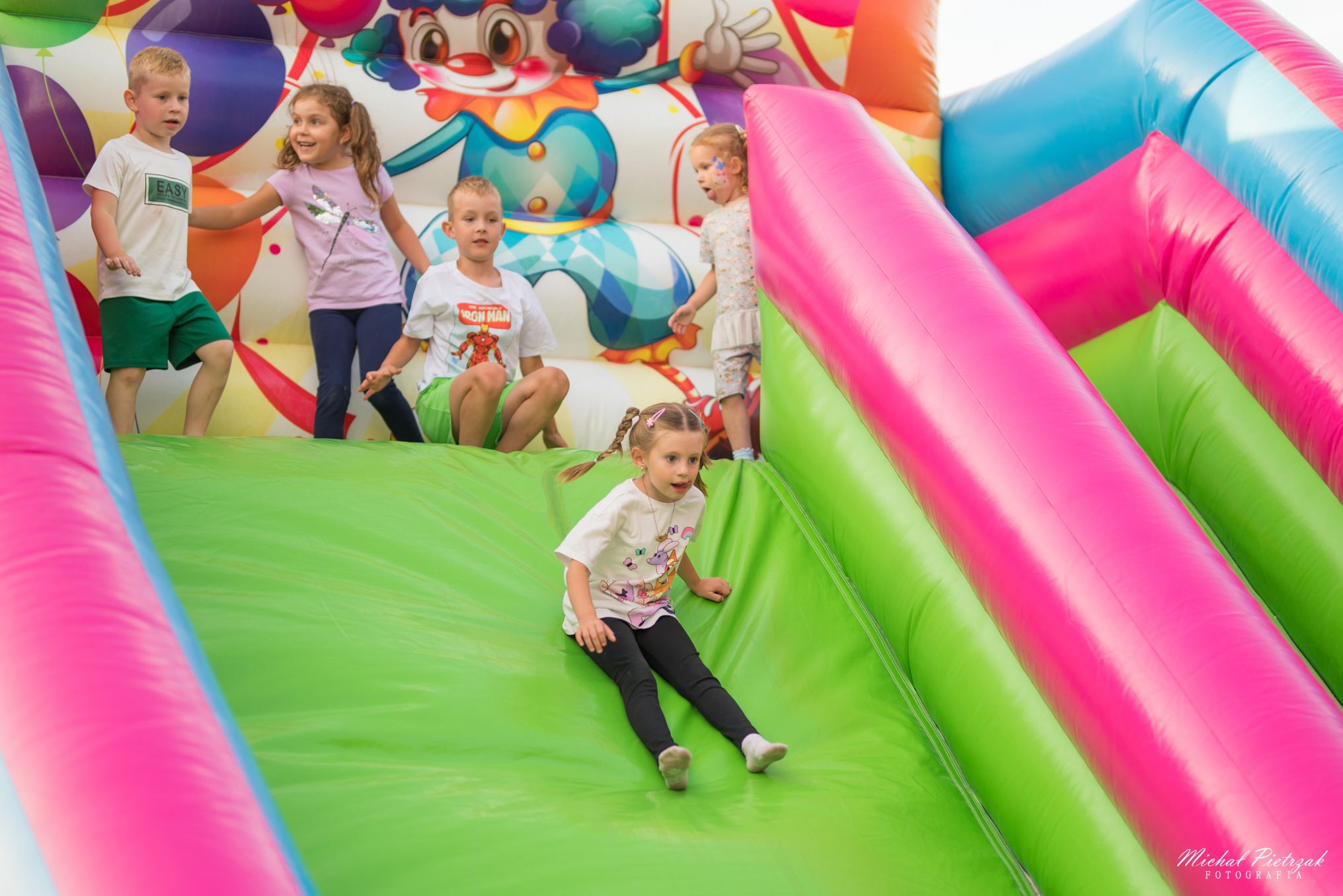 Panowała rewelacyjna atmosfera, dopisała piękna, letnia pogoda, a atrakcji nie brakowało. Dzieci korzystały z animacji, dmuchańców i malowania twarzy, a wszyscy razem bawili się świetnie podczas wspólnych zabaw i loterii fantowej.
